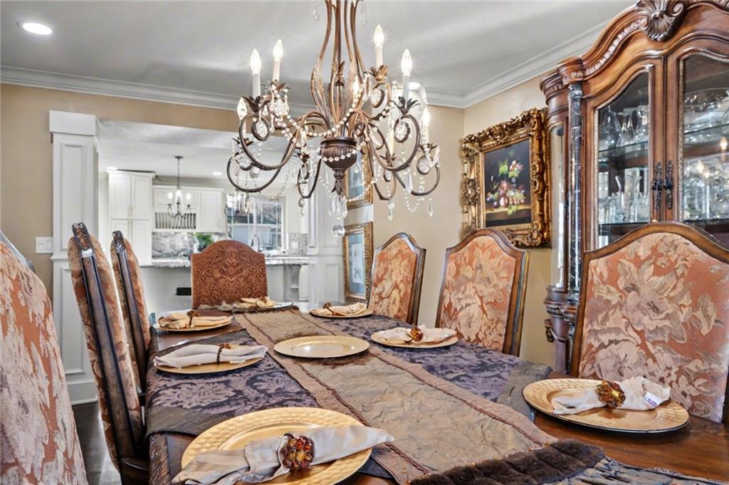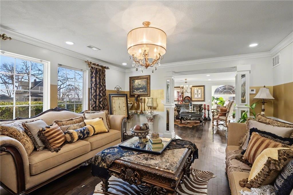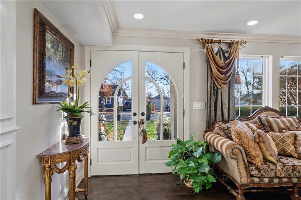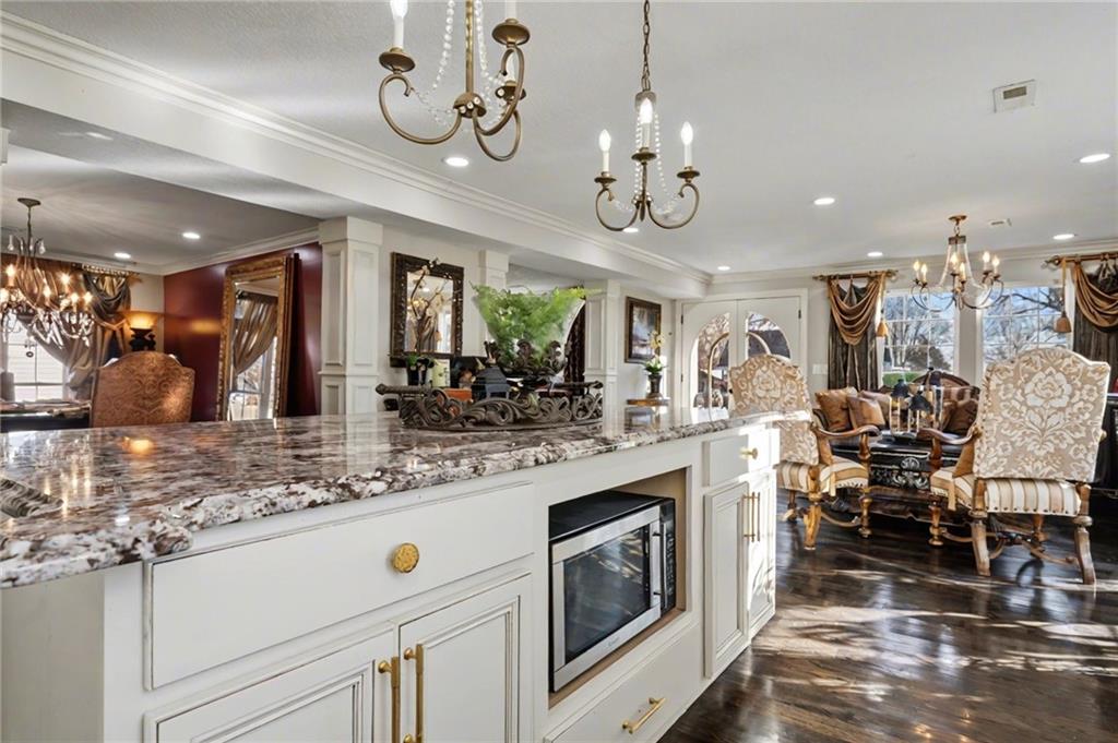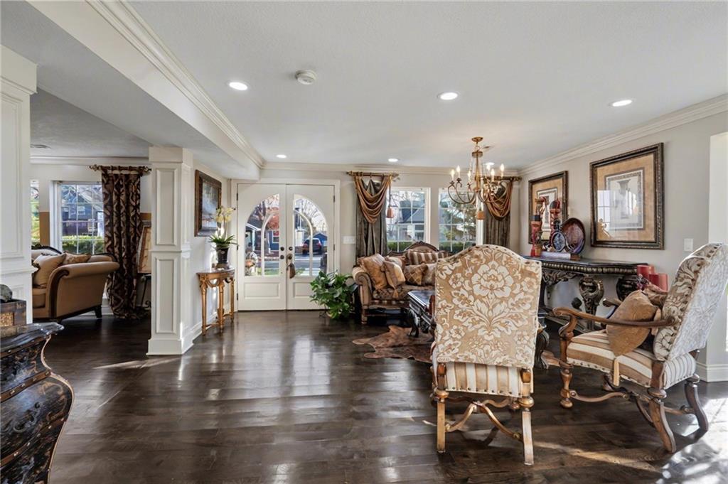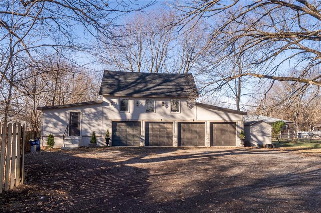 OPEN HOUSE SATURDAY 12/20 10:30-12. Welcome home to this exceptional and elegant 5 bedroom, 3 bath home in the heart of De Soto. This stunning home features 5 spacious bedrooms, 3 full bathrooms, an open floorplan with hardwood flooring, large windows allowing for an abundance of natural light throughout, plus so much more!! An added feature is the large detached 4 car garage with workshop, office and recreation room on almost 1/2 acre lot. As you step into the entryway you are greeted with tall ceilings, picture windows, and gleaming hardwoods. The beautiful living room has a South facing solarium for plant lovers or a sunny reading nook. The spacious kitchen has beautiful granite countertops and backsplash, 36” gas cooktop, a generous kitchen island for culinary space and seating for four, plus a pantry with pull-outs. The dining room and family room spaces are connected to the main area while also creating a cozy feeling with custom pillars and mouldings, creating a floorplan perfect for entertaining or large family gatherings. Full bath just steps from the main level bedroom that opens to the covered deck with fireplace and quiet yard. Upstairs features four more bedrooms with large closets, a hall bath and primary suite with double vanity, walk-in closet and tiled shower. The largest bedroom has a walk-in closet and balcony. After a long day, relax in the cozy backyard under the covered deck overlooking the fireplace and additional terraced decks. From the custom interior lighting, beautiful trim, windows and doors, to the exterior spaces, balcony, and large yard, this home has exceptional design details both inside and out! Just a short walk away from quaint downtown De Soto and near De Soto schools, the peaceful Lexington Lake Park, and within an easy commute to KC, Lawrence, & surrounding areas, this property has it all! No HOA is ideal for using the detached garage for business or hobbies.