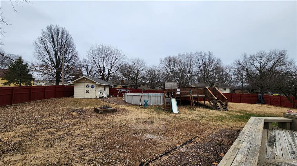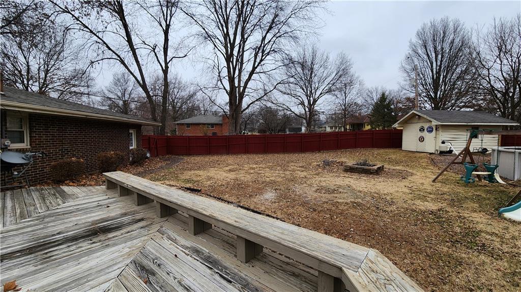 New Roof December 2025! This is a spacious true ranch on a huge corner lot. The back yard is contained within a nice privacy fence. There is a huge deck and above ground pool. There is already a 10'x12' shed, and likely room for a larger building also. This all brick and vinyl house will need little exterior maintenance for years to come. With a little interior cosmetic work you could truly make this one your own. It's only a short distance to Raymore Peculiar High School. Seller providing One Year Home Warranty!
