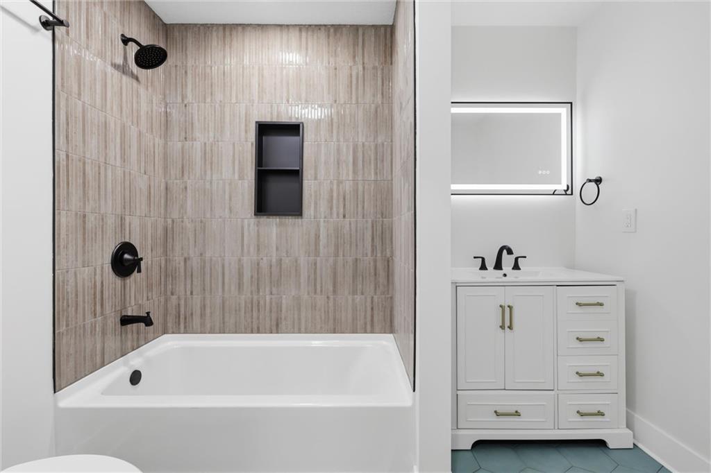 Welcome to this meticulously renovated 3-bedroom, 2.5-bathroom shirtwaist offering over 2,000 square feet across three sun-drenched stories in coveted Longfellow. This stunning home perfectly balances preserved architectural character with modern luxury. Step inside to discover beautifully restored wood trim, baseboards, and window casings creating warmth against fresh white walls and gleaming new hardwood floors throughout. The generous room sizes provide true flexibility for living, working, and entertaining. The showstopper kitchen features crisp off-white shaker cabinets, stunning backsplash, quartz countertops, and stainless appliances. The designer bathrooms rival luxury hotels with floating vanities, LED-lit mirrors, spa-worthy walk-in showers with contemporary tile, and sophisticated black matte fixtures. Pops of color through hexagon floor tiles add personality throughout. The expansive third-floor bonus space with vaulted ceilings offers endless possibilities as a primary suite, office, or media room. Every major system is brand new including dual-zone HVAC (first and second floors on one system, third floor independently controlled), energy-efficient windows, and a new roof. Located in one of KC's most walkable neighborhoods, you're steps from Longfellow's restaurants, coffee shops, and local businesses. Rare three-car parking includes a two-car garage plus covered carport accessed from the rear. The nice-sized yard and covered front porch complete this exceptional package. This isn't just another flip—it's a thoughtful restoration honoring classic bones while delivering every modern convenience. Move-in ready and waiting for you.