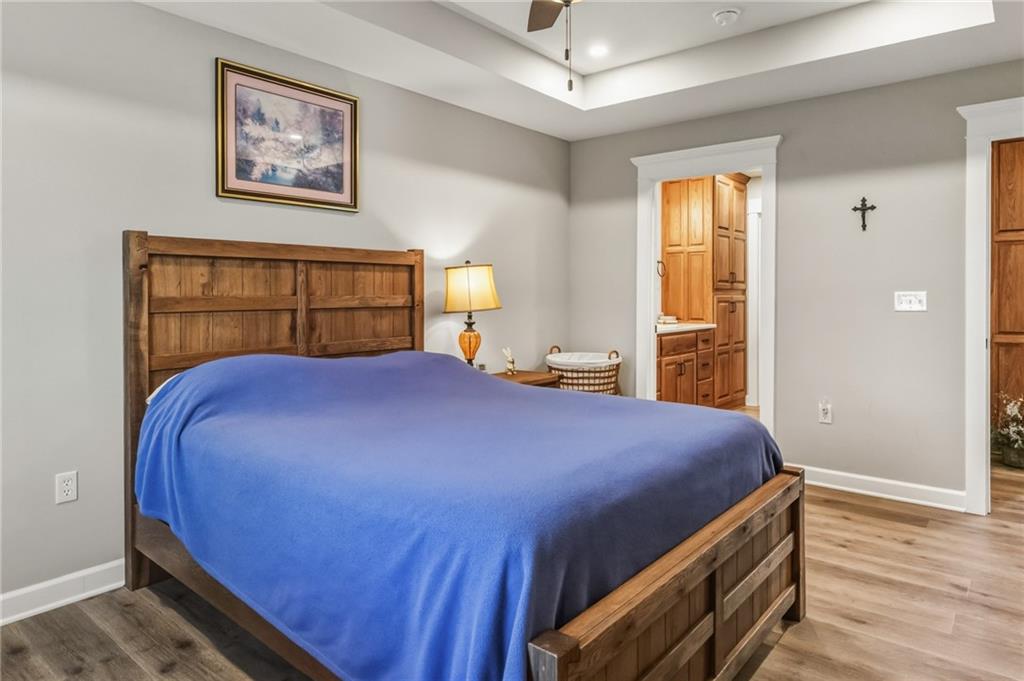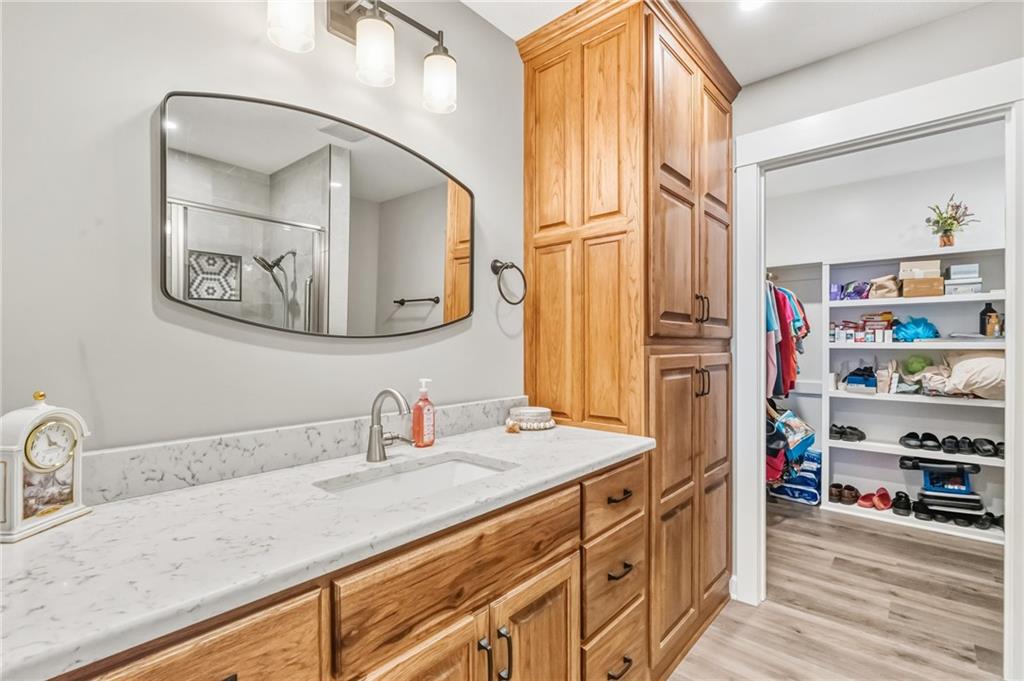 Easy Living, Elevated Style~ Welcome Home! Say hello to modern comfort made easy in this beautifully designed, newer-construction 2 bed, 2 bath, ranch home where style meets accessibility. Thoughtfully built for effortless living, this home invites you in with no-step entry, wide open spaces, and a layout that simply works for today’s lifestyle. Inside, natural light fills the open-concept living area, highlighting vaulted ceilings, a cozy travertine stone fireplace, and high-end finishes throughout. The stunning kitchen is a showstopper, featuring Amish-made custom cabinetry, a travertine backsplash, Quartz countertops, stainless steel appliances with an induction cooktop, and a large island perfect for gathering, entertaining, or everyday meals. The primary suite offers a spacious ensuite and walk-in closet, while the second bedroom is ideal for guests, a home office, or hobbies. Every detail was designed with comfort and convenience in mind, from custom cabinetry throughout to energy-efficient systems and added gutter guards. Step outside and enjoy a private patio, a fully fenced backyard perfect for furry friends, and a side yard with room to garden or unwind, on a nice corner lot. The attached 2-car garage offers room for storage, and yes, washer and dryer stay! Accessible, low-maintenance, and absolutely inviting, this home is ready for you to move in, relax, and fall in love.