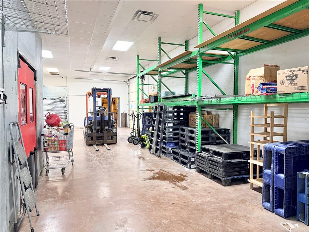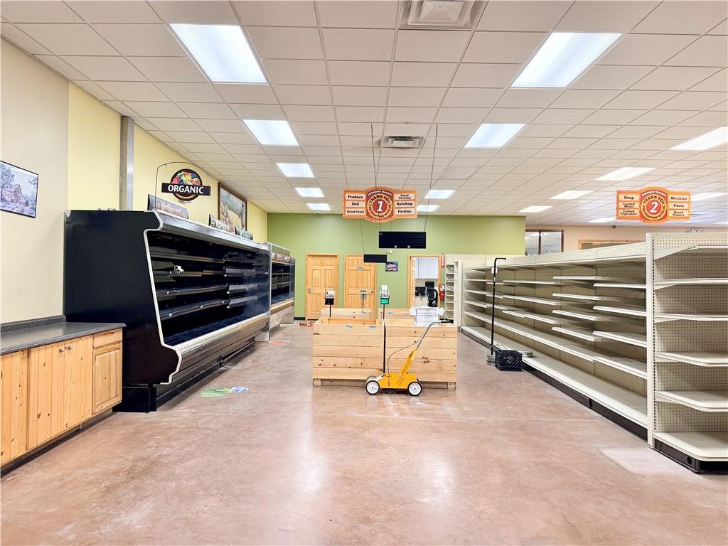 Versatile Commercial Building in the Heart of Jamesport, MO! Exceptional opportunity to own a well-maintained 9,626± square foot commercial building, constructed in 2012, located in the charming and progressive rural community of Jamesport, Missouri. Previously operated as a grocery store, this property offers outstanding infrastructure suitable for a wide range of commercial uses. The building features concrete floor throughout, and durable metal siding accented with an attractive stone façade, creating excellent curb appeal. Inside, the layout includes a spacious retail area, two bathrooms, a dedicated office, breakroom, and a backroom storage area designed for efficient operations. The property is equipped with 3-phase power, a fully functional HVAC system, and existing coolers and freezer units that operate off a central refrigeration system—an ideal setup for food service, retail, or cold storage uses. A new Conklin coating roof installed in May 2025 comes with a transferable warranty, offering long-term peace of mind. Additional highlights include a rear loading dock with overhead door, two double-entry storefront doors, each with covered concrete patio areas, and a 16-camera security system with audio and video monitoring. The site sits on just under one acre, providing ample parking with concrete across the storefront and additional gravel parking. Location is key, surrounded by a community center to one side and downtown retail businesses on the other side, being central for all the local happenings. This well-equipped commercial property combines functionality, visibility, and flexibility in a growing community—an excellent investment or owner-operator opportunity.