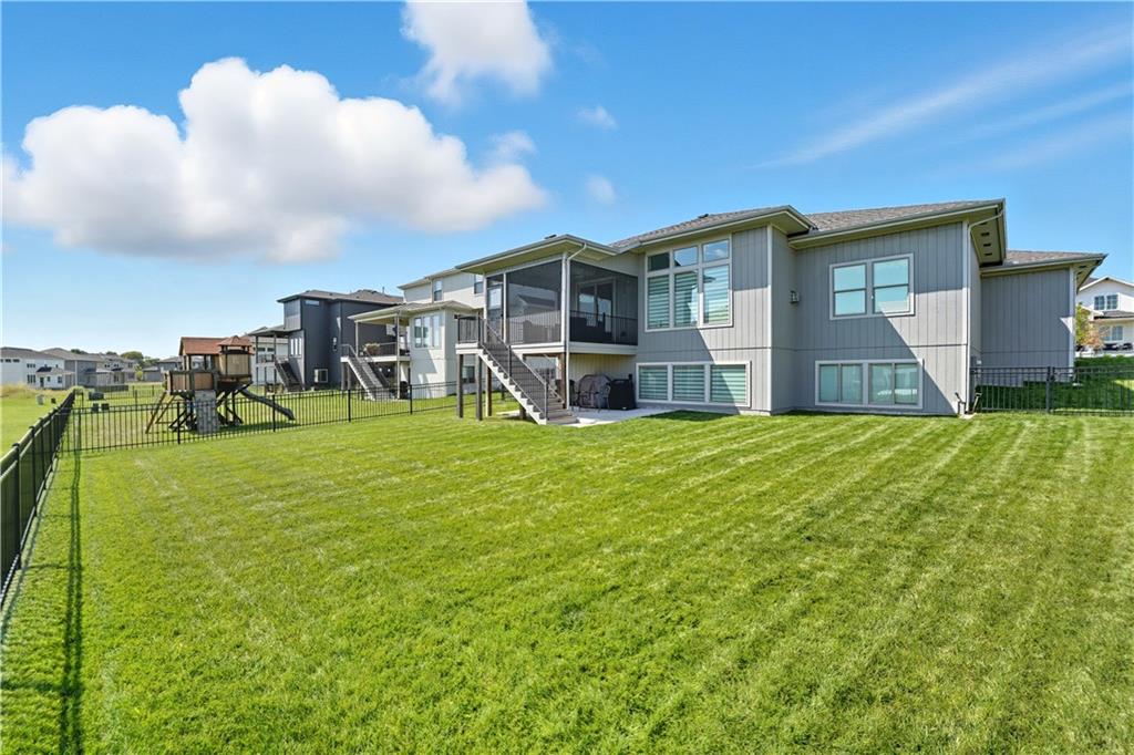 Absolutely Immaculate — Better Than New in Wolf Run! Welcome to this stunning, like-new home in highly sought-after Wolf Run, lightly lived in as a second residence and meticulously maintained. Impressive upgrades include a fully fenced yard, serene screened-in porch, premium window treatments throughout, and a professionally epoxied garage floor — all ready for you to enjoy! Step inside and be captivated by soaring 11-foot ceilings and abundant natural light. To your right, find a versatile true bedroom or office and a beautifully appointed full hall bath. The chef’s kitchen is a showstopper — featuring striking custom ceilings with stained beams and boxed vault accents, a generous quartz island, expansive walk-in pantry, and stunning cabinetry that reaches the ceiling. The adjacent living room centers around a modern, cozy fireplace flanked by built-ins and floating shelves — perfect for both daily living and entertaining. The main-level primary suite is truly exceptional. Designed with style and comfort in mind, it showcases a double boxed vault ceiling, an elegant spa-like ensuite bathroom with zero-entry shower, luxurious soaker tub, framed mirrors, and a deluxe walk-in closet. Main-level living is effortless with a spacious laundry room accessible from both the entryway and the primary suite. Downstairs, discover an expansive finished lower level ideal for gathering and recreation — complete with a full bar, dining area, two additional large bedrooms, a full bathroom, and plenty of extra storage. The 3 gar garage fits a huge truck or SUV nicely. Be sure to check out the Upgrades sheet totaling more than $32,000 in upgrades! This home blends style, function, and upscale touches at every turn. A must-see property — truly turnkey!
