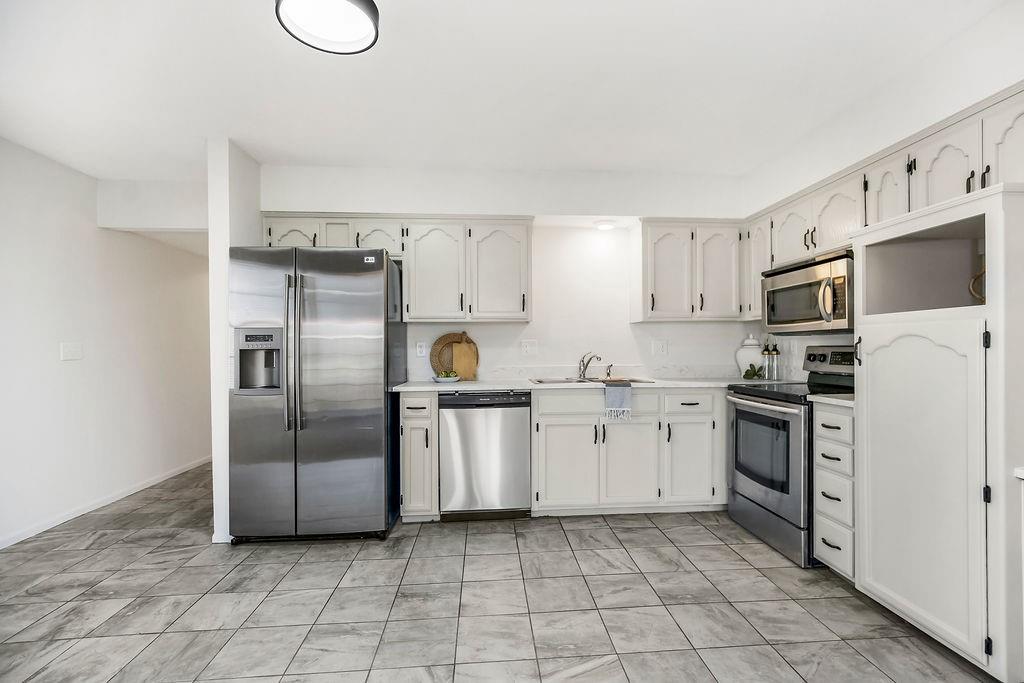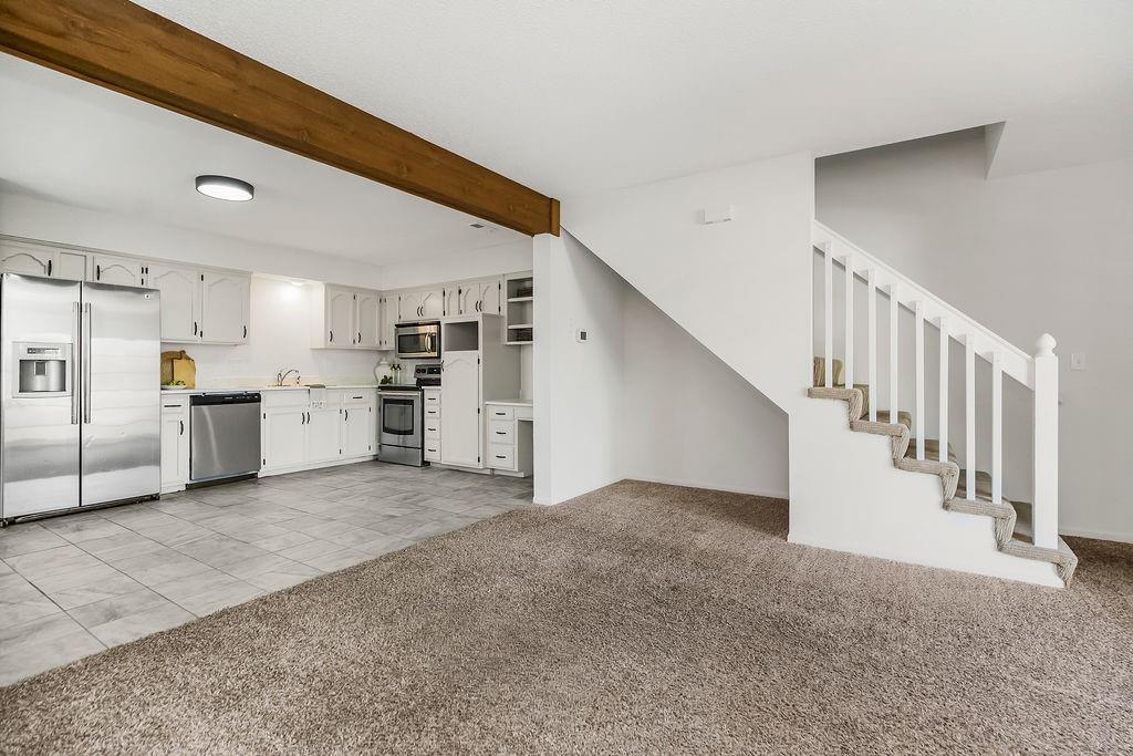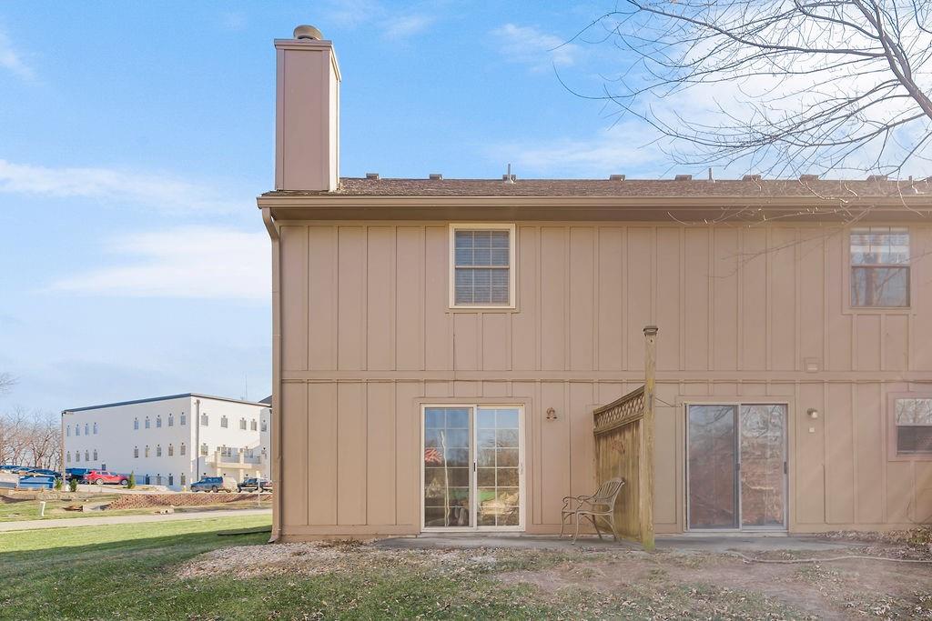 Beautifully updated 3-bedroom end-unit townhouse just minutes from vibrant Downtown Lee’s Summit! Step into a spacious family room featuring a cozy fireplace that flows seamlessly into the open kitchen, complete with stainless steel appliances, painted cabinets, new countertops, and fresh paint throughout including doors and trim! The main level also offers a convenient half bath with tile flooring and direct access to the laundry room. Upstairs, the primary suite impresses with vaulted ceilings, a walk-in closet, and private access to a tiled bathroom with a brand-new vanity top. The second bedroom is generously sized with its own walk-in closet, and the third bedroom also provides flexible space for a guest bedroom or home office. The family room opens to a patio and backyard overlooking peaceful nature views—perfect for relaxing or entertaining. Enjoy truly low-maintenance living with an HOA that covers lawn care, trash, and exterior maintenance (studs out). Plus, the roof is just five years old and AC replaced in 2023 for added peace of mind. All this just minutes from downtown Lee’s Summit shopping, dining, entertainment, and quick highway access for commuters. This one checks all the boxes—schedule your showing today!
