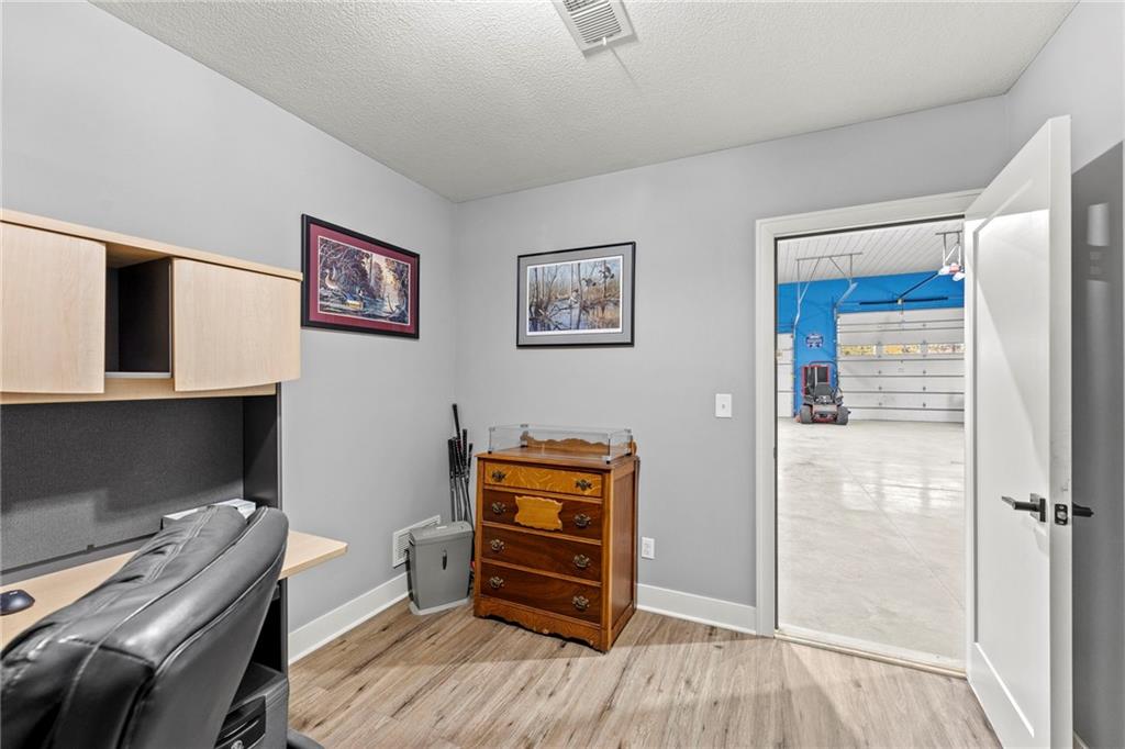 This absolutely stunning, custom-built 2021 barndominium offers the ultimate in secluded luxury across 20+ acres of gorgeous timber and pasture, greeting you with a sprawling covered porch perfect for taking in the abundant local wildlife. The interior showcases the finest craftsmanship through an open-concept layout defined by soaring ceilings, luxury vinyl flooring, and expansive walls of windows that flood the home with natural light. At the heart of the residence sits a gourmet kitchen featuring granite countertops, a massive island, custom cabinetry with pull-out drawers, and a 9x8 walk-in pantry with outlets, all flowing seamlessly into a dining area and a great room anchored by a cozy rock gas fireplace. Practicality meets style in the spacious mudroom, flanked by a dedicated laundry area and a convenient half bath, while the private primary suite serves as a true retreat with its tiled shower, deep soaker tub, and walk-in closet. Two additional generous bedrooms and a full bath provide ample space for family or guests, while a fully concrete 10 x 10 safe room ensures peace of mind. The home's technical specifications are equally impressive, featuring a sophisticated solar energy system supported by a propane gas generator and battery storage for total self-sufficiency. Covered back patio, great for entertaining. Completing this exceptional property is a 50x64, fully insulated, and sheet rocked garage/shop equipped with 200 AMP service, three overhead doors, an exit door, and dedicated attic storage—all situated on a prime piece of land ideal for hunting, farming, or recreation.
