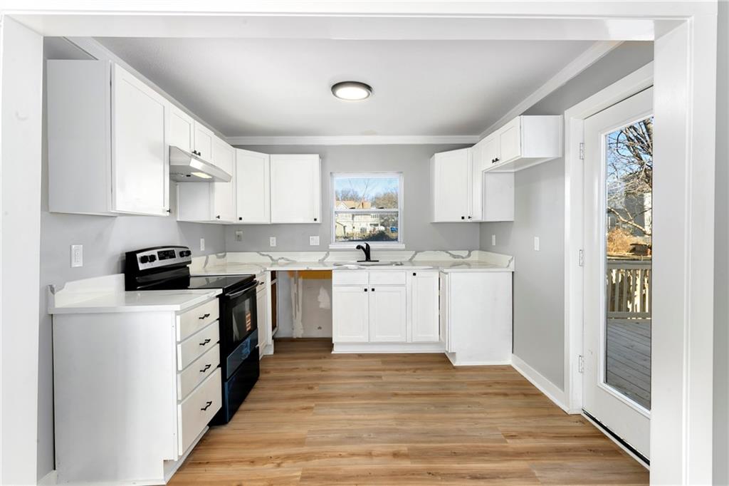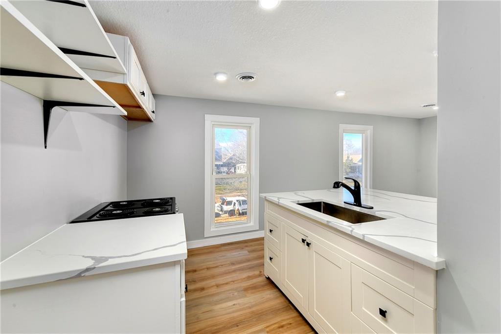 Newly renovated 2-story Duplex, featuring 2-bedoom and 1-bath units, in the rejuvenated Downtown Olathe area! A short stroll from new restaurants, parks and green spaces, new JoCo library, quaint downtown shops; nearby Olathe Medical Center, KS School for the Deaf, Mid-American Nazarene University, Johnson County Courthouse and government buildings; centrally located with quick access to highways for commuting! Perfect for STR, mid-term rentals, and establishing long-term tenant opportunities alike. Maximize your investment with professional business travelers and 2026 leisure travelers! Many possibilities with these 2 units. First floor unit features a covered porch, deck with fenced yard, tall ceiling, ramp entrance, large windows; Second floor unit features compact, modern open kitchen / living combo, but with large bedrooms. Laundry area in building, with separate exterior entrance. New roof, new flooring, new countertops, new bathrooms, new wall and ceiling drywall, interior and exterior paint, new SS appliances!