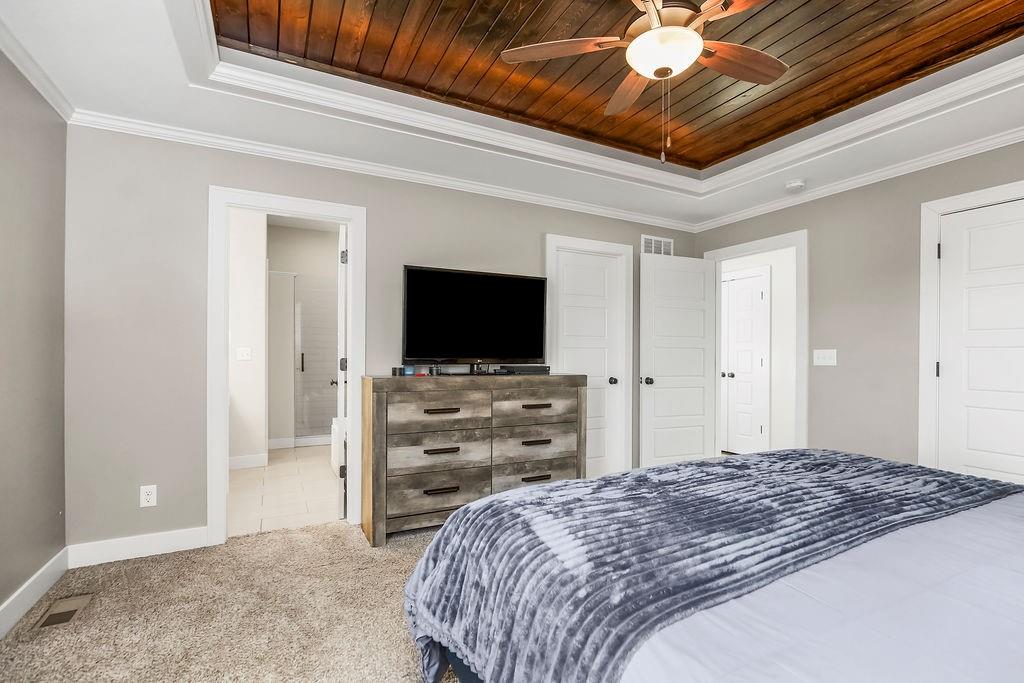 Now available in Pleasant Hill—this home has it all! Enjoy peace of mind with a brand-new roof and step inside to a stunning Great Room featuring soaring ceilings, a cozy fireplace, and beautiful walnut hardwood floors. The bright white kitchen shines with granite countertops, custom cabinetry, a NEW stainless steel refrigerator, and other newer appliances—perfect for everyday living and entertaining. The main level primary suite showcases gorgeous wood ceiling details and two closets including a walk-in, while the luxurious primary bath offers dual sinks, a whirlpool tub, and a walk-in shower. You will find two more bedrooms on the upper level with blinds and walk-in closets, and a tiled full bath with shower/tub. A rare bonus, this home features two primary suites, including a second private retreat in the lower level complete with a HUGE closet and safe room. The tiled lower-level full bath adds even more convenience. Outside, enjoy a fully fenced yard with a privacy fence, upper deck with stairs down for entertaining, plus neighborhood lake access stocked with fish—ideal for relaxing weekends and outdoor fun. Socket Fiber is new to the area. This is one you won’t want to miss!