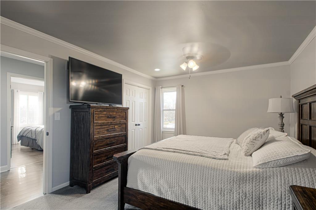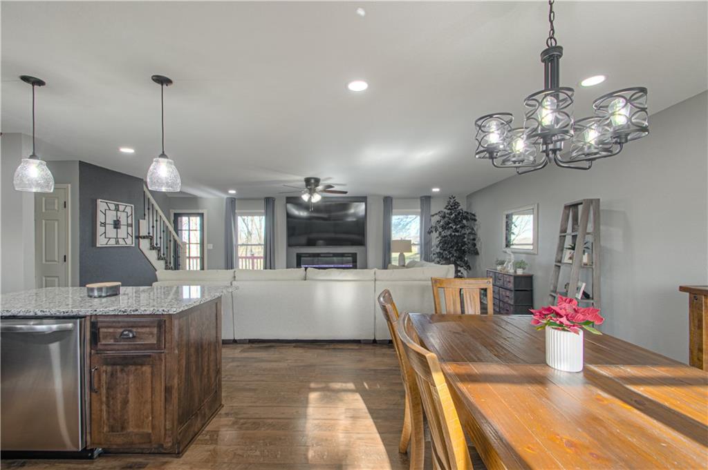 This home is impeccable! The owners have taken great care of it, remodeling the great room and kitchen with new cabinets, flooring, appliances, and an electric fireplace. The majority of the windows are newer, and the home has fresh paint and beautiful landscaping. The property itself is stunning, featuring an impressive two-level barn that measures 28x32 feet, surrounded by views of pecan, walnut, apple and oak trees. You can relax on the newly treated deck and enjoy watching the wildlife. The roof and heat pump are both under 10 years old. The side-entry garage is spacious, with one stall measuring 32 feet wide by 27 feet deep, and a second stall that is 24 feet deep. Dogwood Elementary and Kearney High School serve the home. Additionally, it's conveniently located near the Kearney Jesse James Fairground. Please note that the square footage, taxes, and other information should be verified by the buyer's agent.