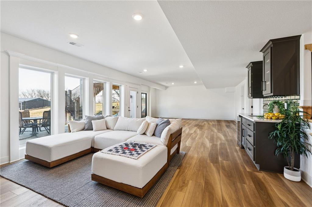 Stop the Car! *** Just over 3 years young *** ALL ONE LEVEL living *** 5 acres *** Liberty! Built by reputable Heartland Homes: perfect blend of modern luxury, peaceful acreage, and everyday convenience with — NOOOO HOA!!! Thoughtful upgrades throughout. 5 acres JUST outside of town, get the privacy and nature without sacrificing quick access to amenities. 4 bedrooms, 3.5 baths, and 3,228 sq ft—a floorplan that’s spacious enough to live comfortably yet easy to maintain. The craftsmanship shines from the moment you walk in with so many upgrades: vaulted ceilings, white oak cabinetry, wood floors throughout, and luxury live edge granite, upgraded floor to ceiling tile in the bathrooms just to name a few. Keep the home clutter free with oversized drop zone & storage galore. The finished walkout basement is a dream space beyond the 2 bedrooms — the rec area is wide open with 10' ceilings, luxury vinyl plank flooring, a wet bar, and endless flexibility. Add bedrooms, create a home gym, design a theater. The possibilities are wide open with the finished AND unfinished space. In fact, plumbing rough-in's already installed for a future dog wash station. Impressive Outdoor living with composite covered deck, a 15' extended patio also partially covered, and plenty of room to add a future pool thanks to lateral lines thoughtfully placed to the south side. The property includes two tax parcels under one legal description, giving you the option to designate one as agricultural if desired. Property is all electric. A huge bonus: the 30' x 50' outbuilding with concrete floors—perfect for equipment, hobbies, vehicles, or a workshop. Has 3 overhead doors (two on north and one on east). Located in the sought after Liberty School District, this home offers the rare combination of acreage, upgrades, convenience, and freedom. And yes… no HOA!!!