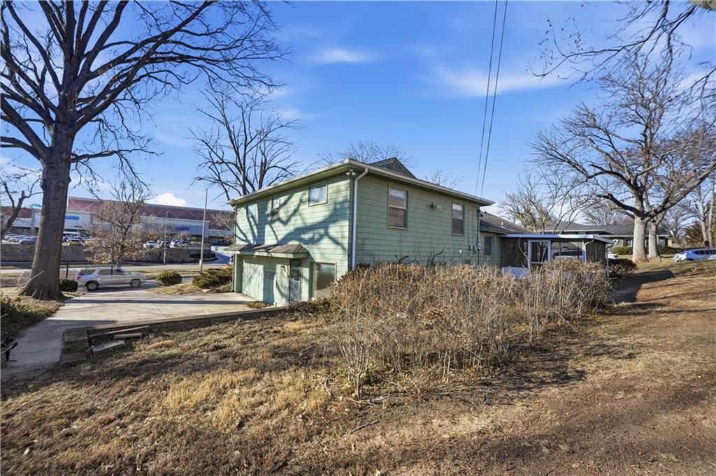 Cash in on all the social capital of a Ward Parkway address! This charming 4 bedroom, 2.5 bathroom sits on a corner lot in close proximity to a vibrant shopping district! Main level features great room with mid century modern vibe fireplace and adjacent formal dining. Just off the formal dining room is a sun porch full of natural light, a great place to unwind, and concrete patio beyond for outdoor enjoyment. Kitchen features tile backsplash, newer oven (2024) and breakfast area. Down a short flight of stairs is a family room with extra space to host gatherings with friends and family. Family room has egress door to driveway as well as an adjacent half bath to service common areas. Upper level features a primary bedroom with ensuite bath and three additional bedrooms. A second full half bath off the hallway features surround subway tiles and shower over tub. Multiple rooms throughout home have original hardwood floors waiting to be discovered! 2 car garage features appealing side entrance. Convenience is at your doorstep! This home is located just minutes from trendy cafés, locally owned shops, and easy transit options. Modern amenities nearby include everything from yoga studios, parks, and entertainment to grocery stores. Come add your finishing touches to make this home uniquely yours!