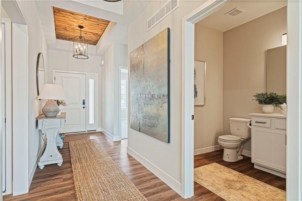 Welcome to the innovative design and modern style of Ashlar Homes! The popular Graysen plan, featuring the Modern Heritage elevation. Experience the perfect blend of modern elegance and functional design in this stunning new construction ranch. This home features high-end James Hardie® board with ColorPlus® Technology siding and advanced double-wall construction. Spanning 1,683 square feet on the main level, the home welcomes you with an open-concept great room featuring a dramatic box vault ceiling with custom car siding detail and a floor-to-ceiling stone fireplace with a wood mantle. The chef-inspired kitchen is equipped with Frigidaire® stainless steel appliances, a gas stove, beautiful quartz countertops, and a custom tiled backsplash. Retreat to the expanded primary suite, which boasts a ceiling fan and a luxurious bathroom finished with tiled floors, a walk-in tiled shower, and quartz vanities. Attention to detail is evident throughout with an upgraded trim package featuring taller baseboards and fully trimmed windows. Outside, enjoy a widened driveway leading to an insulated three-car garage, and relax on the 12x12 composite deck or lower patio. The massive walk-out unfinished basement is already stubbed for a future bathroom, offering a blank canvas to expand your living space. Come see Spring Hill's newest affordable choice for new home construction, at Fox Hollow! Under construction and Coming Soon! No Physical House yet, at permitting stage.