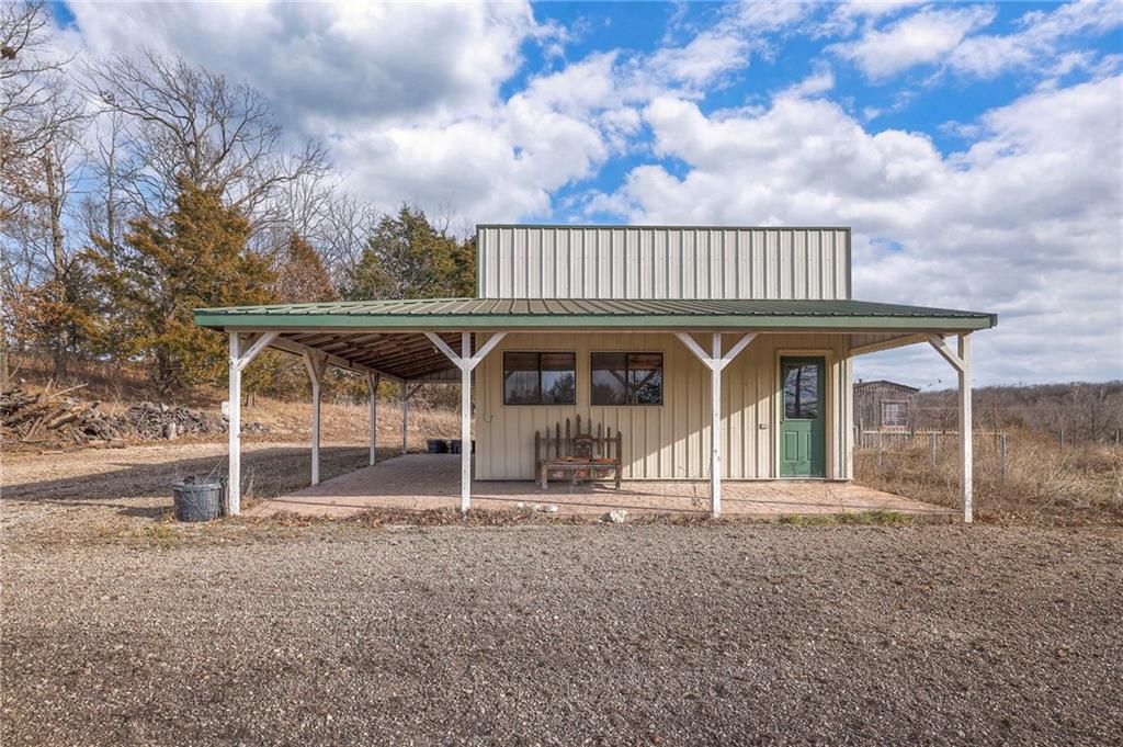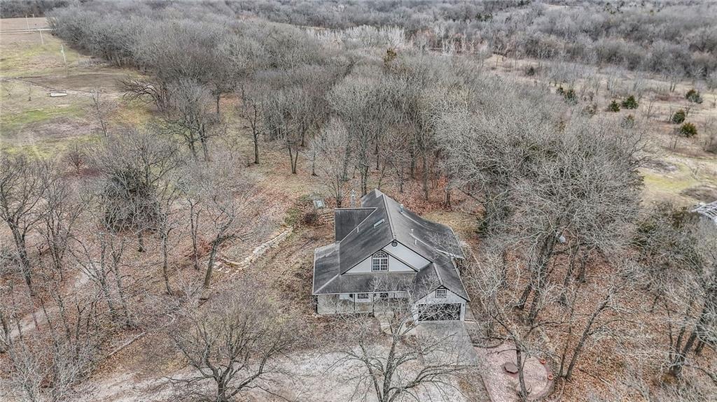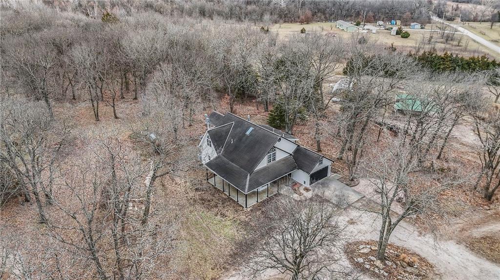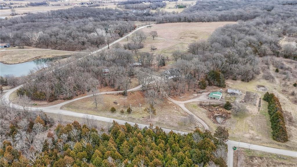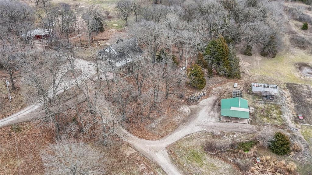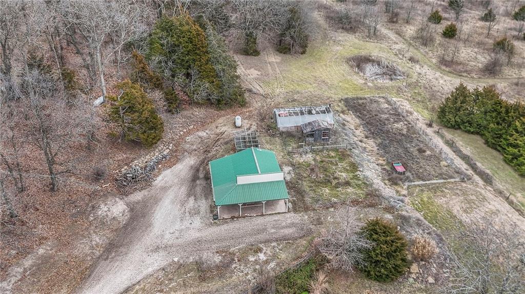Discover an incredible opportunity to own a beautiful 23-acre hobby farm, with picturesque wooded areas and rolling pastures—ideal for outdoor enthusiasts, hunters, and anyone dreaming of country living! This unique property features a spacious 2,046 sq ft main home, freshly painted on the exterior and topped with a brand-new roof prior to closing for peace of mind. A welcoming covered porch invites you to relax and enjoy panoramic views of nature, while inside, the large kitchen boasts a gas and electric cooktop, refrigerator, two sinks and an island for gatherings. The master suite is thoughtfully designed to be wheelchair-friendly, with a spacious walk-in shower for comfort and accessibility. The main living room has soaring vaulted ceilings and expansive windows for great views outside to see the deer in the yard. Retreat upstairs to a cozy bedroom featuring a fireplace, built-in safe, and your own private covered balcony—the perfect spot for quiet mornings with coffee. Plus a 4th non conforming bedroom. For your guests or multigenerational living or a business office, the secondary living quarters (491 sq ft) comes complete with its own driveway for privacy and convenience. Enjoy the ultimate rural lifestyle with an outbuilding with a wood-burning stove, chicken coop, two carports, a pond, raised garden beds, garden shed, patio with fire pit, storm shelter, and an orchard. Additional highlights include three driveways, an average hay yield of 56 bales per year, and plenty of room for tree farm, nursery, gardening, livestock or future expansion. Nestled in a tranquil country setting, this property offers something for everyone. Please note: a manufactured home currently on site will be removed in January and is not included in the sale.
