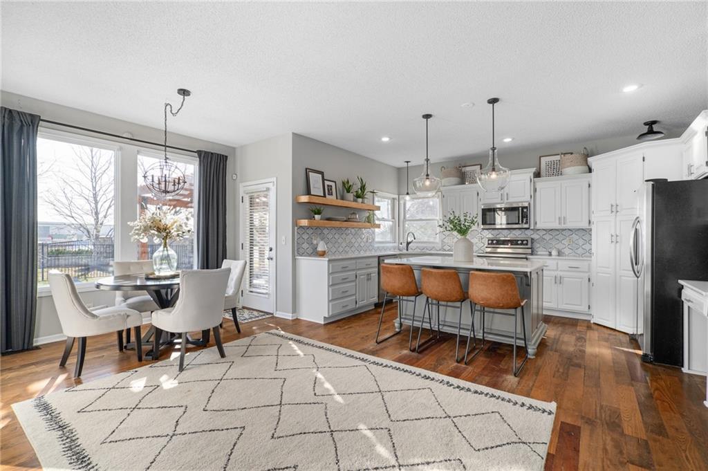 There’s no better way to start the new year than in a home this beautiful. Masterfully designed and stylish, your new 4 bedroom, 3.1 bath home with 3 car garage sits on a large corner lot in and checks boxes you didn't even know you needed! The main level is open and airy with a grand 2 story entry, a dining room with new carpet, and lots of fresh interior paint. The updated kitchen features a large quartz island, pantry, and flows right into the breakfast room and great room with a fireplace, think cozy mornings and sparkling evenings. Upstairs, the primary suite is super spacious with a sitting area, walk-in closet, and an updated bath with new LVP, soaker tub, and separate shower. Secondary bedrooms are generously sized with walk in closets and two additional full baths. Zoned HVAC adds year-round comfort by allowing customized temperature control throughout the home. The finished lower level offers an open rec room, flex space, heated floors, and great storage. Outside, the expanded patio with pergola is ideal for hosting or relaxing any time of year. Oak Run offers a neighborhood pool, top rated West Olathe schools, easy highway access, and is close to Lake Olathe. A perfect home in a great location where amazing memories are waiting to be made!