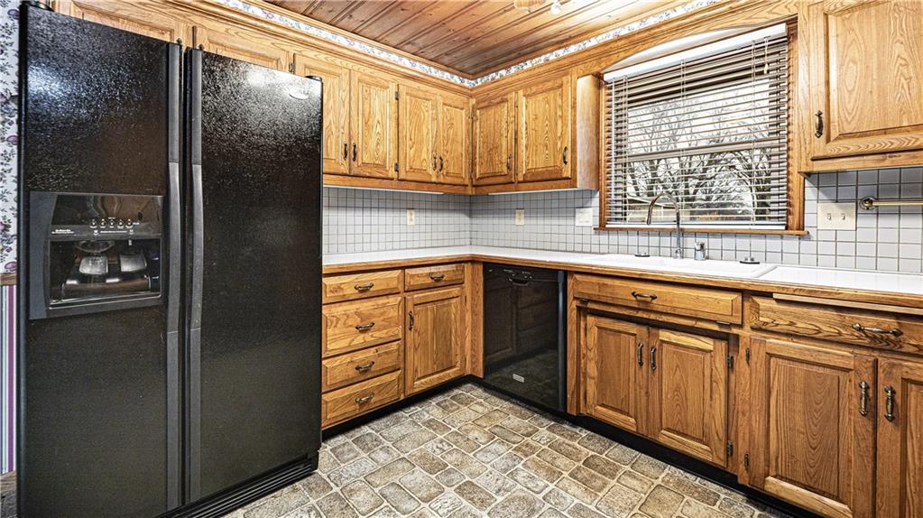 Step into this beautiful all brick ranch in the heart of Raymore. This spacious home boasts over 1,400sq.ft. of finished space with 2 family living areas and a huge level fenced yard! Custom solid wood kitchen cabinetry with a pull-out solid wood cutting board and corner appliance garage. The Den off the kitchen has a beautiful all brick fireplace with gas starter and pegged solid hardwood flooring throughout. 3 spacious bedrooms and 2 full bathrooms including a walk-in shower in the Master. Full dry unfinished basement for future expansion. Minutes to shopping, restaurants and Hospital. If you're looking for one level living, then this is definitely the one!