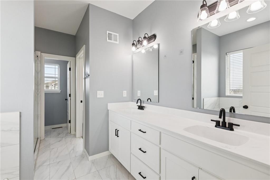 This beautifully maintained, 5-year-old split-entry home feels welcoming the moment you walk in. The open floor plan creates a bright, easy flow between the living, kitchen, and dining areas perfect for everyday life and entertaining. The kitchen is both beautiful and thoughtfully designed, complete with a pantry, and all appliances stay, including the refrigerator, washer, and dryer. Main-floor laundry adds everyday convenience. The primary suite is tucked away for privacy and offers a double vanity, soaking tub, stunning walk-in shower, and a generous walk-in closet. Two additional bedrooms and a full bathroom sit on the opposite side of the main level, giving this home a true split-bedroom layout. Downstairs, the finished walk-out basement expands your living space with a large rec room, a 4th bedroom, and a 3rd full bathroom, plus walkout access to the patio. Enjoy relaxing on the covered deck, all set on a quiet corner lot with the added curb appeal and function of a side-entry 3-car garage.