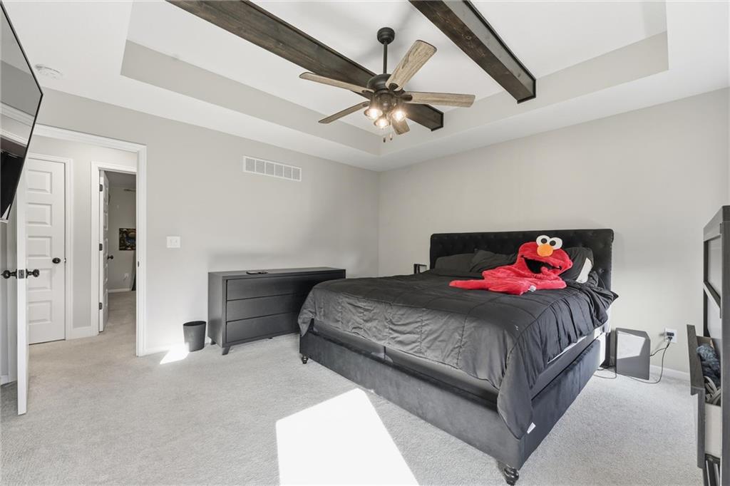 Welcome home to this, like new, 4-bedroom, 3-bathroom front-to-back split. From the charming front porch to the vaulted living room accented by rustic wood beams and a cozy fireplace, every detail impresses. The heart of the home features a chef’s kitchen with granite countertops, stainless appliances, and a walk-in pantry. Retreat to the primary suite, a private oasis complete with wood-beamed ceilings, a soaker tub, and a spacious walk-in closet. The walk-out lower levels offer a bright finished basement, a full bath, and a private 4th bedroom. Outside, the new patio and custom fire pit overlook a fenced backyard—perfect for entertaining. Schedule your showing today for this move in ready home!