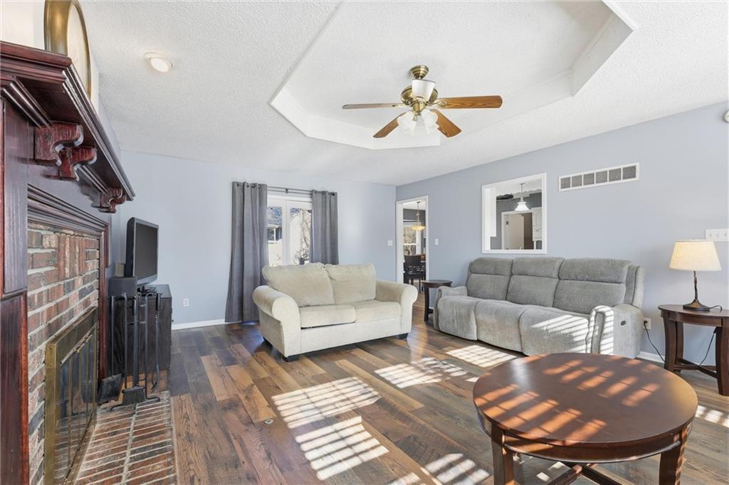Location can't be beat! Lee's Summit School District and 5 minutes from Historic Downtown Lee's summit, known for its walkable streets, local shops, restaurants, and community events like Forth Friday Art Walks, Downtown Days, and Oktoberfest. This 3 bed 2 bath home is the perfect place to start your homeownership journey. Inside you'll love the spacious living room with a cozy fireplace, ideal for relaxing nights at home. The living room wraps around to dining room and eat-in kitchen area, featuring white cabinets, plenty of counter space and bar area for extra seating. Laundry is off the kitchen area on main level making those laundry days not so horrible. All three oversized bedrooms and 2 bathrooms are all located on main level, primary bedroom has own bathroom and very spacious closet. The finished lower level is a big bonus, this area could be used for family room, play room, man cave, workout room, game room or huge home office area. Outside the extra large backyard if completely fenced and ready for dogs, kids and entertaining. The two car extra deep garage is a dream with plenty of room for work bench or storage or extra toys. This one has value in location and space. Come in and bring your own personal touches and build equity fast. Roof is approximately 7 yrs old according to seller it was 2 years old when she purchased in 2021, HVAC is approximately 14 yrs.