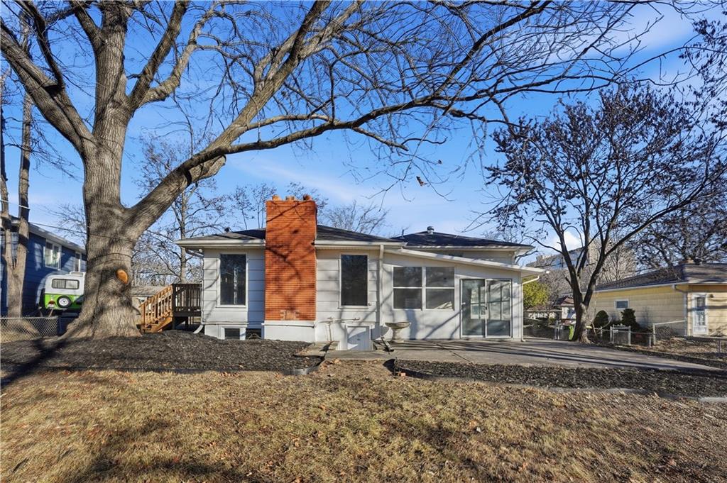 Welcome to this fully renovated split-level home, completely transformed from top to bottom and tucked into a quiet, established neighborhood with mature trees. The main level is bright and open with vaulted ceilings, exposed wood beams, and a comfortable living space that flows into the dining area and updated kitchen featuring ALL brand-new stainless steel appliances, white cabinetry, and modern finishes. Just off the main living area, a large sunroom offers additional space to relax or entertain. Upstairs, you’ll find well-sized bedrooms, including a primary suite with its own bathroom, plus an updated hall bath. The laundry is conveniently located on this level, right next to the bedrooms, making everyday living easy. The finished lower level adds valuable flexibility with a second living space, a full bathroom, and a spacious non-conforming 4th bedroom with a walk-in closet. With private exterior access, this area works well for guests, a home office, or additional living space. Additional features include updated flooring throughout, modern fixtures, ample storage, a two-car garage, and a rear deck overlooking the yard. Located just minutes from North Kansas City Hospital and approximately 10 minutes from Downtown Kansas City, this home offers quick access to city amenities while still feeling removed from the busy city life. Move-in ready and thoughtfully renovated throughout, this home is truly unrecognizable from its original condition and offers a functional layout, great location, and flexibility to fit a variety of lifestyles.