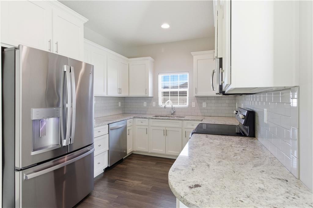 Welcome to maintenance-free living in this 55+ community home, ideally located just one mile from The Legends and Village West shopping district—soon to be the hub for all Kansas City sports! Open floor plan w/ beautiful hardwood floors throughout the main living areas. The spacious great room boasts a large vaulted ceiling, creating an airy and inviting atmosphere. The kitchen offers plenty of cabinet space, granite countertops, a pantry, and a full stainless steel appliance package. The primary bedroom is generously sized with its own vaulted ceiling, a walk-in closet, secondary closet and a private bath complete with a large shower. Both bathrooms feature ceramic tile floors for easy maintenance. Enjoy relaxing evenings on the nice back patio or the front charming country porch. The large two-car garage provides plenty of parking and storage space. This energy-efficient, all-electric home is equipped with heat pumps for year-round comfort. Plus, a HUGE unfinished full basement offers endless possibilities for additional living space or storage.