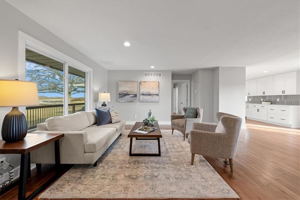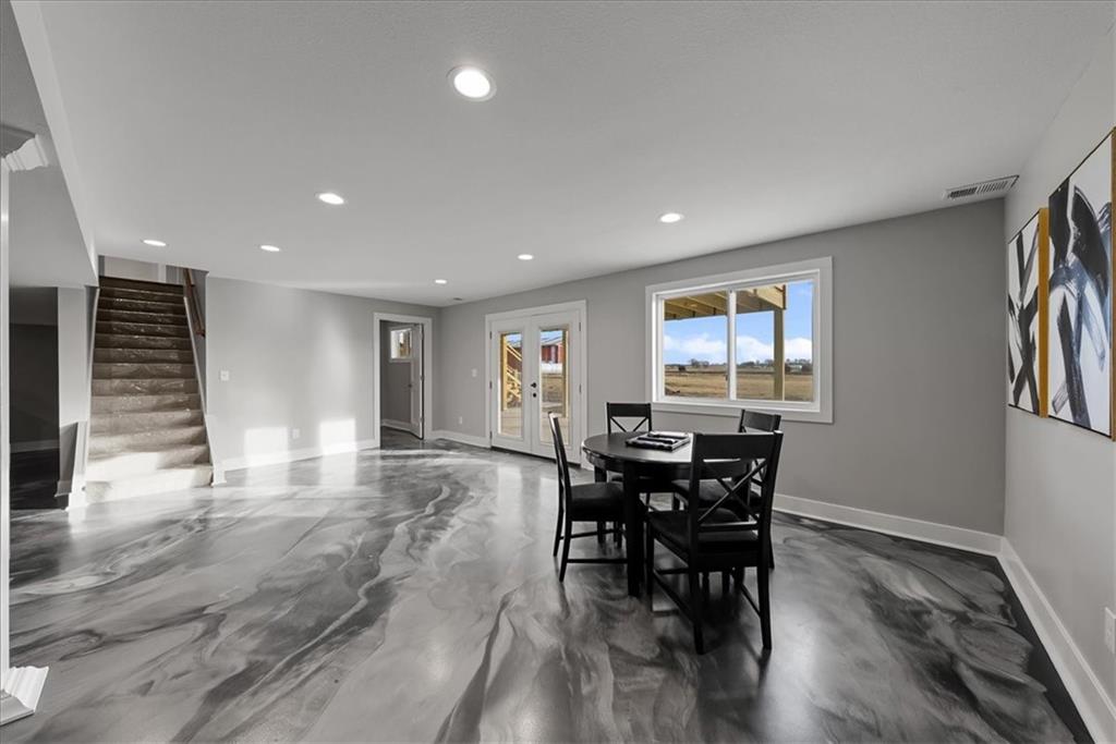 Acreage & ranch-style living! Fully renovated 3,017 sq ft ranch on 10 acres with 4 beds, 3.5 baths, finished walkout basement, and flexible main-level office/4th bedroom. Modern updates blend with classic ranch design—perfect for buyers seeking space, privacy, and country living with style. At the heart of the home is an all-new kitchen featuring abundant cabinetry, quartz countertop surfaces, and brand-new appliances—designed for both everyday living and entertaining. New bathrooms, all new windows, doors, flooring, HVAC System, Electrical Box and wiring, Siding, Exterior and Interior paint and all-new fixtures throughout reflect the home’s comprehensive renovation and elevated finish. Everyday functionality shines with an expansive mudroom and main-level laundry, along with a walk-in pantry complete with a convenient grocery door to the garage. The finished walkout basement extends the home’s versatility, offering a wet bar, professional epoxy flooring, and a striking glass-and-tile walk-in shower—ideal for hosting, relaxation, or extended living. The 2.5-car side-entry garage has new epoxy floors, providing durability with a polished look. Outdoor living is enhanced by a large new deck and expansive concrete patio overlooking the peaceful, open acreage. Additional amenities include a 40x60 outbuilding with electricity and a convenient lean-to, perfect for equipment, animals or additional storage. Paved road access—no gravel. The buyer receives first right to purchase the adjoining 8 acres, offering potential for added privacy or future expansion. NO HOA. No fencing. Just space, freedom, and the opportunity to make it your own.