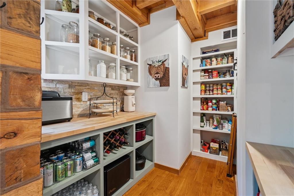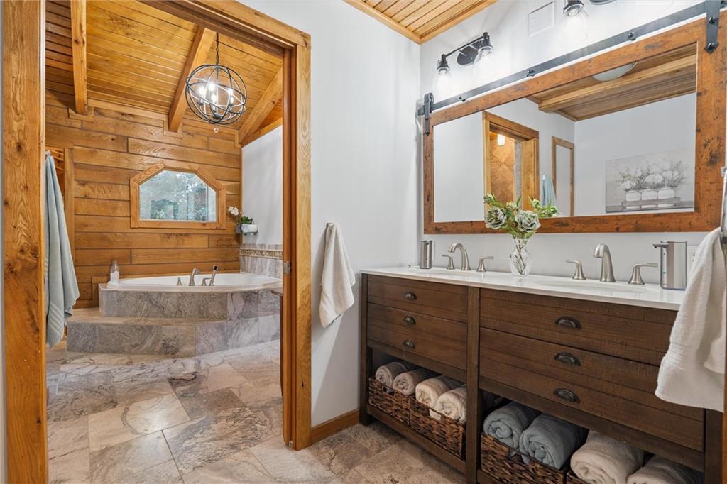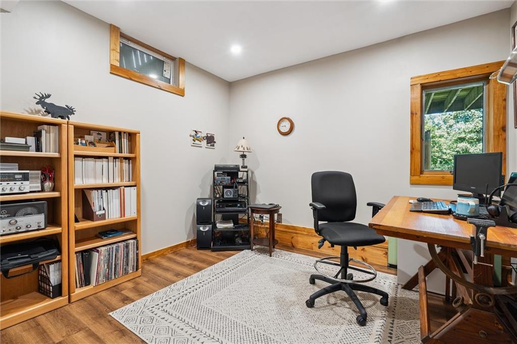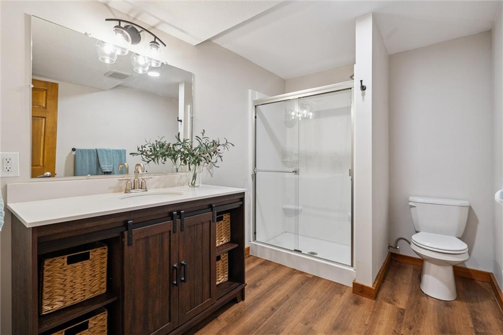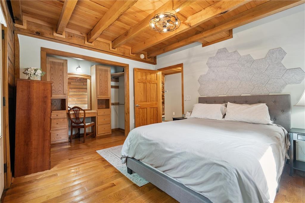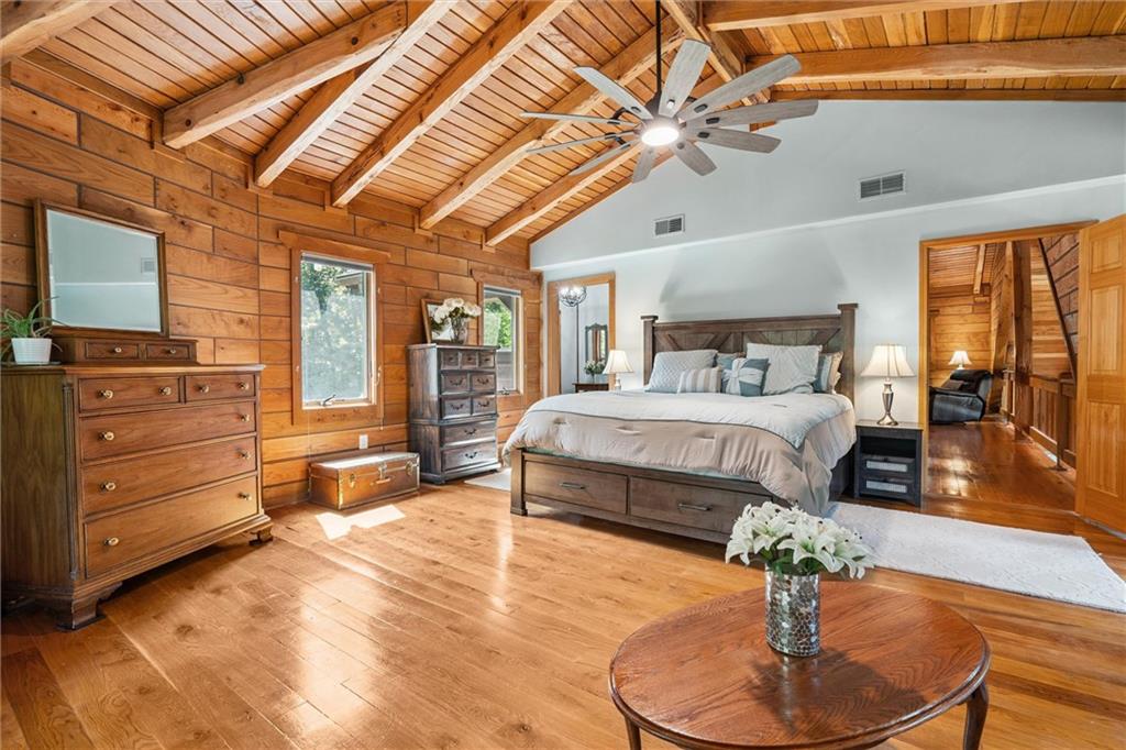 Stunning Log Home on 5 Wooded Acres! So much privacy and situated on all paved roads just 20 Minutes from Lee’s Summit! This custom log home offers over 3,500 sq ft of finished living space across three levels. It is nestled on 5 acres in an established rural neighborhood with paved roads as well. Upgrades: Whole House Generac and gas fireplace powered by propane and immediate backup power! Upgraded custom lighting inside and out and sellers finished the walkout basement which includes a second laundry and new hot water heater. Step inside to soaring vaulted ceilings, expansive windows that flood the home with natural light and rich hardwood floors throughout. Main level features a dramatic two-story Great Room with cozy gas fireplace, spacious dining area, and a chef’s dream kitchen complete with custom cabinets and a finished walk-in pantry. A main-level bedroom includes a built-in dresser/vanity with full bath across the hall. Upstairs, the open loft is a great hangout/office and overlooks the great room with lots of natural light. The upper loft also leads to the luxurious primary suite, offering custom built-ins, a private deck, a walk-in closet with laundry hookups, and a spa-inspired ensuite bath. An additional upstairs bedroom with a separate deck completes the upper level. The finished walk-out lower level adds over 600 sq ft of versatile living space, including a family room with direct patio access, a coffee/wet bar, a fourth bedroom, an office, full bath, second laundry area, ample storage, and 1 car garage. Enjoy the outdoors and privacy from multiple decks and porches surrounding the home! The second driveway offers space for additional parking or an out-building. Whether you're entertaining, relaxing, or working from home, this property offers the ideal blend of rustic charm, modern convenience, and peaceful seclusion.
