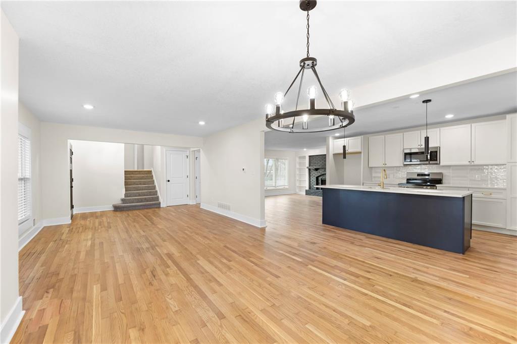 COMPLETELY REMODELED SPLIT LEVEL IN THE HIGHLY DESIRED STAGECOACH MEADOWS SUBDIVISION! Beautiful finished wood floors throughout the main level. Open floor plan features family room with brick fireplace and built-ins. Beautifully updated kitchen with tons of cabinet space, large island, backsplash and stainless appliances. Primary bedroom includes walk in closet and private bathroom. All secondary bedrooms are oversized. Unfinished basement is awaiting your design ideas. Private fenced yard. Close to shopping, highways and restaurants.