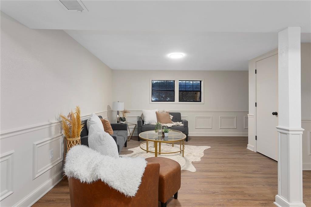 Welcome home to this beautifully updated property featuring a fully remodeled floor plan with a fresh modern feel throughout. From the moment you step inside, you’ll love the bright open spaces, sleek finishes, and thoughtful updates that make this home truly move-in ready. The kitchen is a showstopper with painted cabinets, a stylish tiled backsplash, and a butcher-block center island that offers extra counter space and doubles as seating—perfect for everyday meals or entertaining guests. The primary bedroom features its own private ensuite bathroom complete with a walk-in shower for convenience and comfort. Head downstairs to the second spacious family room, ideal for movie nights or hosting gatherings. Don’t miss the fun corner bar area with infinity lights—your new favorite spot for game nights or weekend hangouts! One of the best spaces in the home is the fully enclosed sunroom—usable year-round with plenty of room for a dining setup or cozy couches to relax with your morning coffee or unwind in the evenings. Step outside to the huge fenced backyard, offering endless possibilities! There’s a large patio area great for outdoor seating or BBQs, along with two storage sheds for tools, toys, and equipment.