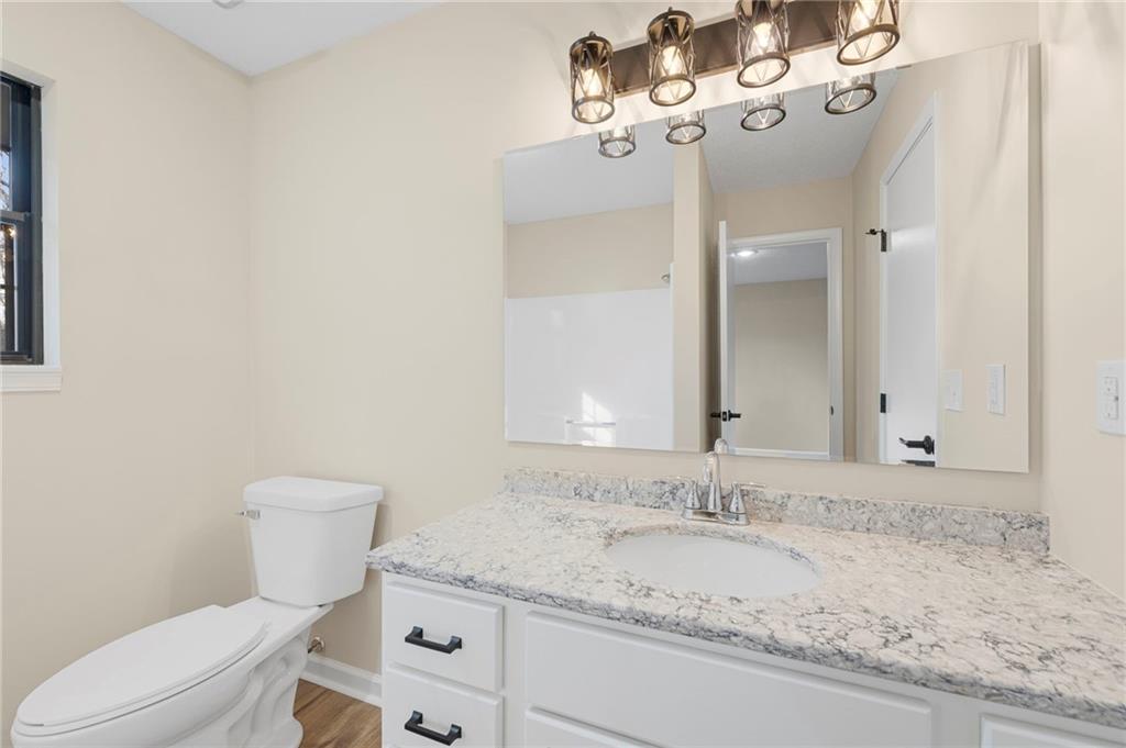 Amazing opportunity for one level living or an investment property! This home is located just minutes from the shops and restaurants at the Legends! Completely updated and move-in ready! This home features all new interior paint, updated hardware and lighting, granite countertops, and new appliances. Bathrooms have been refreshed with higher sinks, a taller toilet, and brand-new refinished tubs. New carpet and new luxury vinyl plank flooring run throughout the home. The basement offers a non-conforming 4th bedroom, a REC room, and a full bathroom with tile flooring and a walk-in closet, perfect for added living space. Additional highlights include a cozy wood-burning fireplace, a huge storage area and washer and dryer hookups in the unfinished space. Interior cabinets have been newly painted. Major exterior upgrades include a new roof and gutters installed in 2025. A rare find that's move in ready!