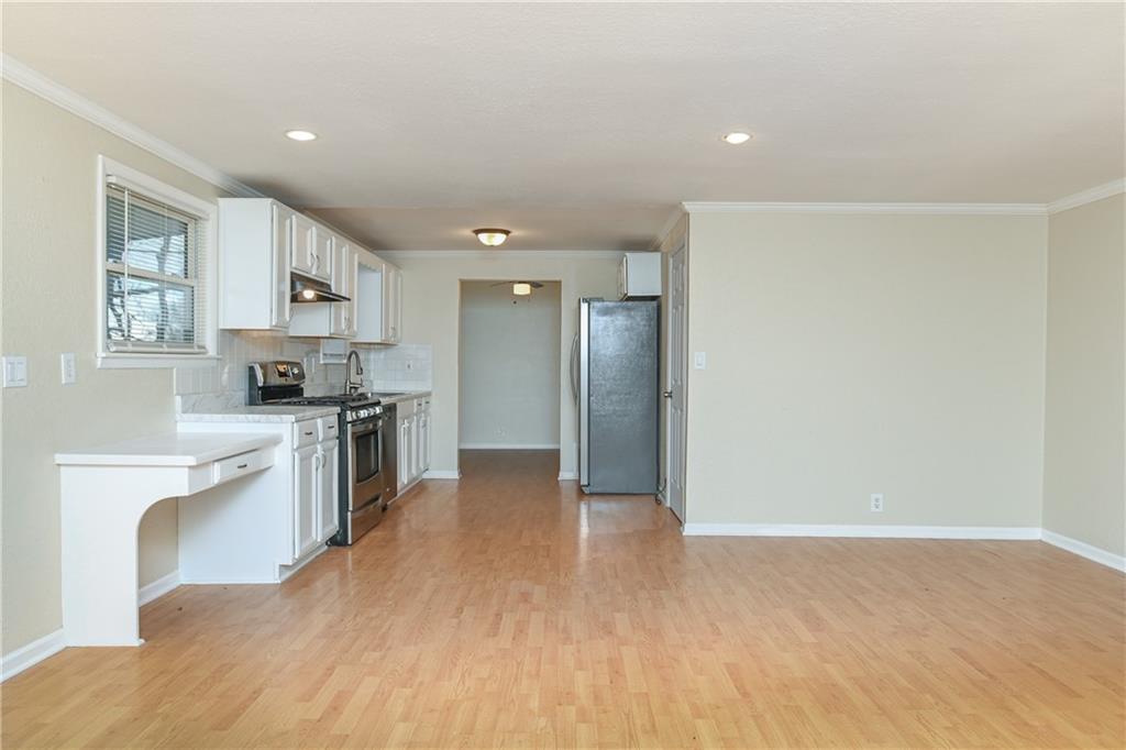 Fully remodeled home on a rare ½-acre lot! This 3 bedroom, 2 bathroom property features a finished basement offering flexible living space for a second living area, guest suite, or home office. Updated kitchen with white cabinetry, stainless steel appliances, modern finishes, and fresh flooring throughout. Spacious yard with mature trees—perfect for entertaining or future expansion. Move-in ready with easy access to shopping, dining, and highways.