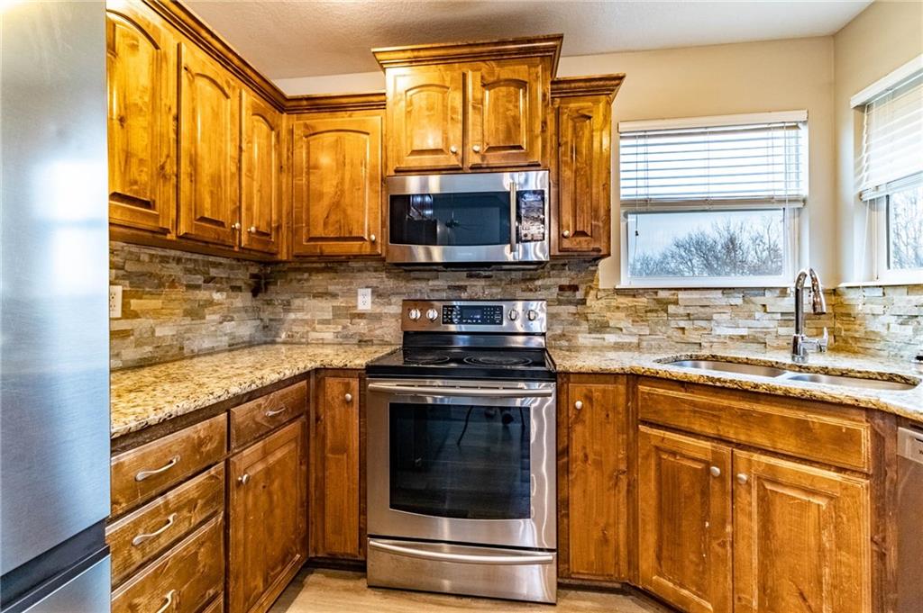 Beautiful 4 Bed/3 Bath home boasts high ceilings and an open floorplan. Large spacious living room offers an electric fireplace and lots of natural light. The kitchen features custom cabinets, stone backsplash, granite countertops, stainless steel appliances and a pantry. You can walk right out to the deck from the dining room sliding glass doors for easy access to BBQ, entertain, or just relax. The spacious primary bedroom and bath has high vaulted ceilings, separate jetted tub and shower, private toilet room, double vanities, and a walk-in closet. There are 2 more bedrooms, laundry, and a guest bathroom on the main level. The lower level offers a huge bedroom & full bath room. That room could be used as a family room. The huge backyard has a privacy fence and gates to access the front yard. There is an oversized 2 car garage attached. This home is located close to shopping, restaurants, and a short commute to Whiteman Air Force Base.