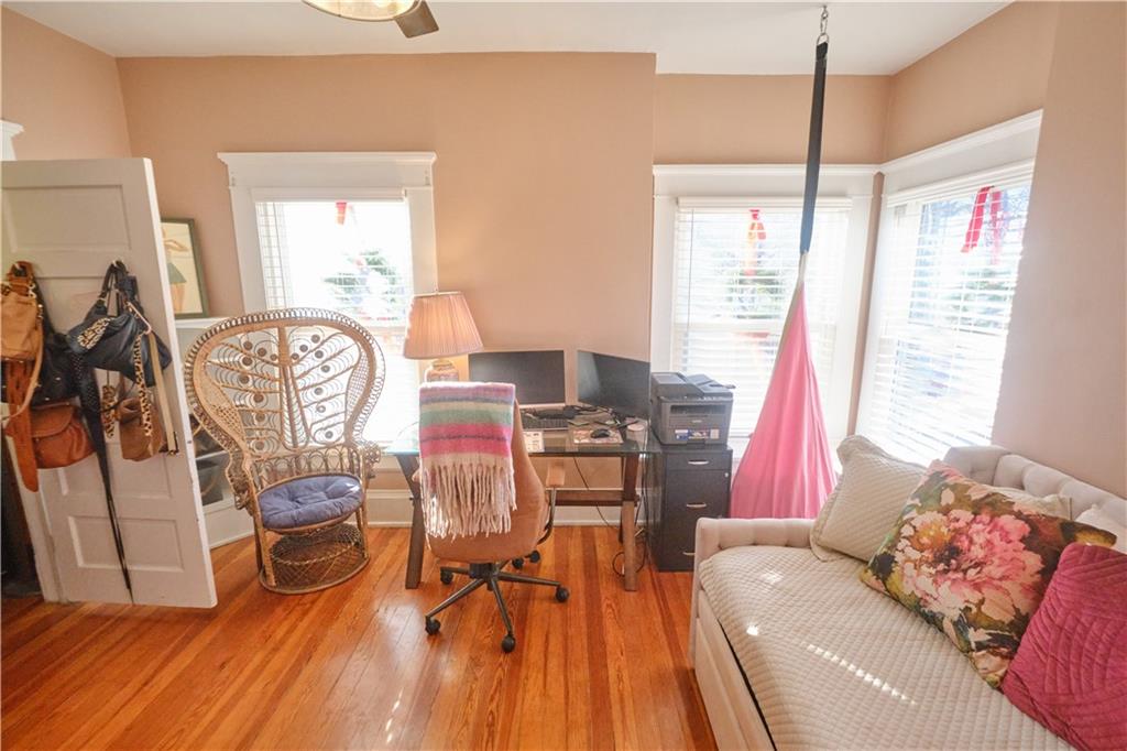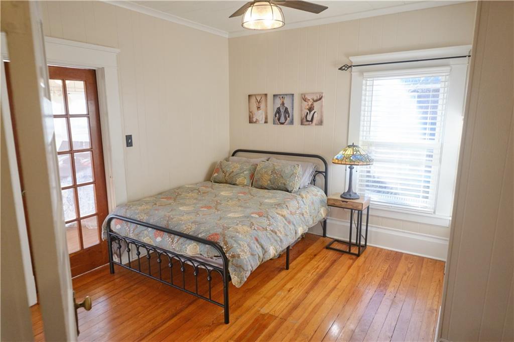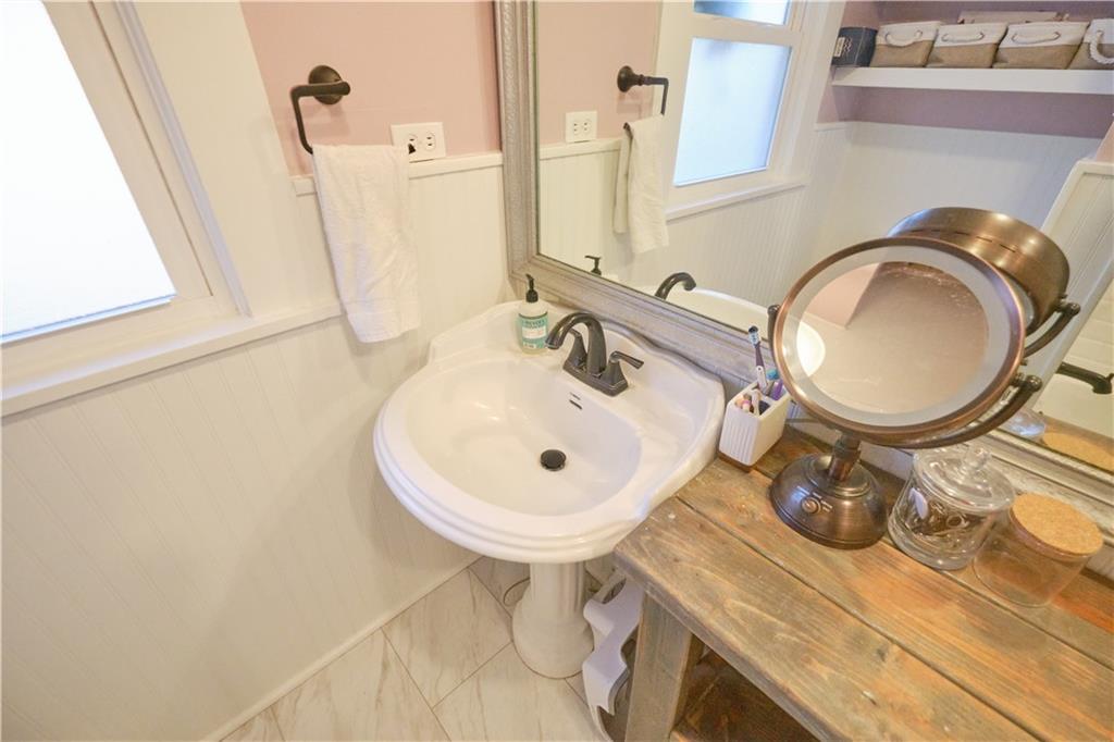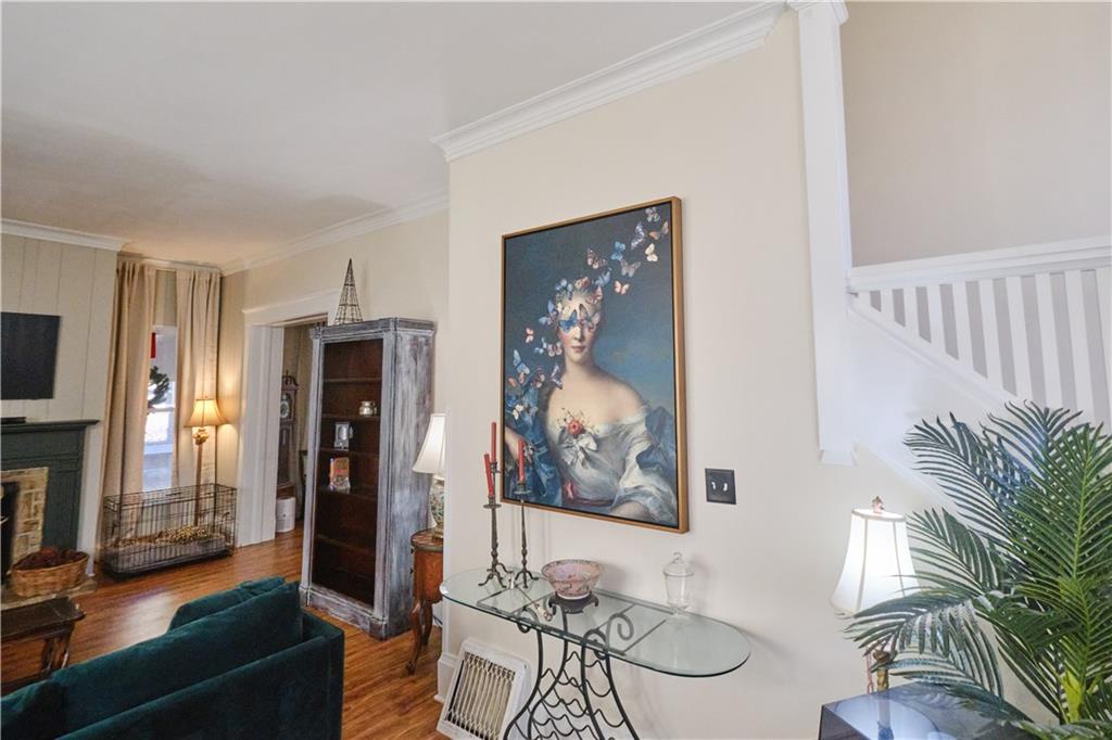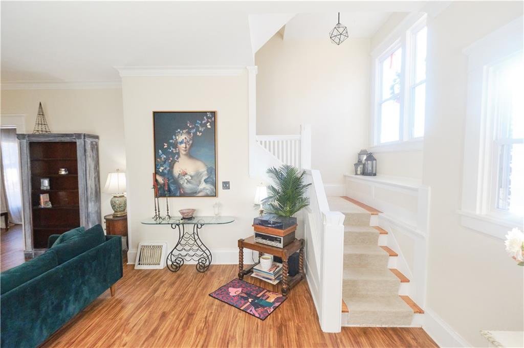 Take a look at this stunning 4-bedroom, 2.5-bath Craftsman-style home nestled in the historic Southwest Pittsburg neighborhood. This home features tall ceilings, beautiful original wood floors, solid wood doors, and crown molding. It also boasts Leaded and beveled glass doors and windows. The custom kitchen offers ample storage and prep space, along with a spacious island and breakfast area. The large, welcoming covered front porch leads into the foyer and expansive living room, where a gas log fireplace serves as the focal point. A beautiful open staircase leads to the upstairs bedrooms. There are four spacious bedrooms, with the primary bedroom attached to the fourth bedroom. This setup is perfect for a nursery or home office and includes an updated private bath. The third bedroom leads to the large upstairs sunroom, which is flanked by windows on three sides. The hall bath has been tastefully updated with modern fixtures and added storage. There’s also a full unfinished basement with a dry basement drainage system installed. Step outside onto the new composite deck with metal railing. The large privacy-fenced yard features a private flagstone patio, a large attached carport, and an unattached garage. Make your appointment soon!