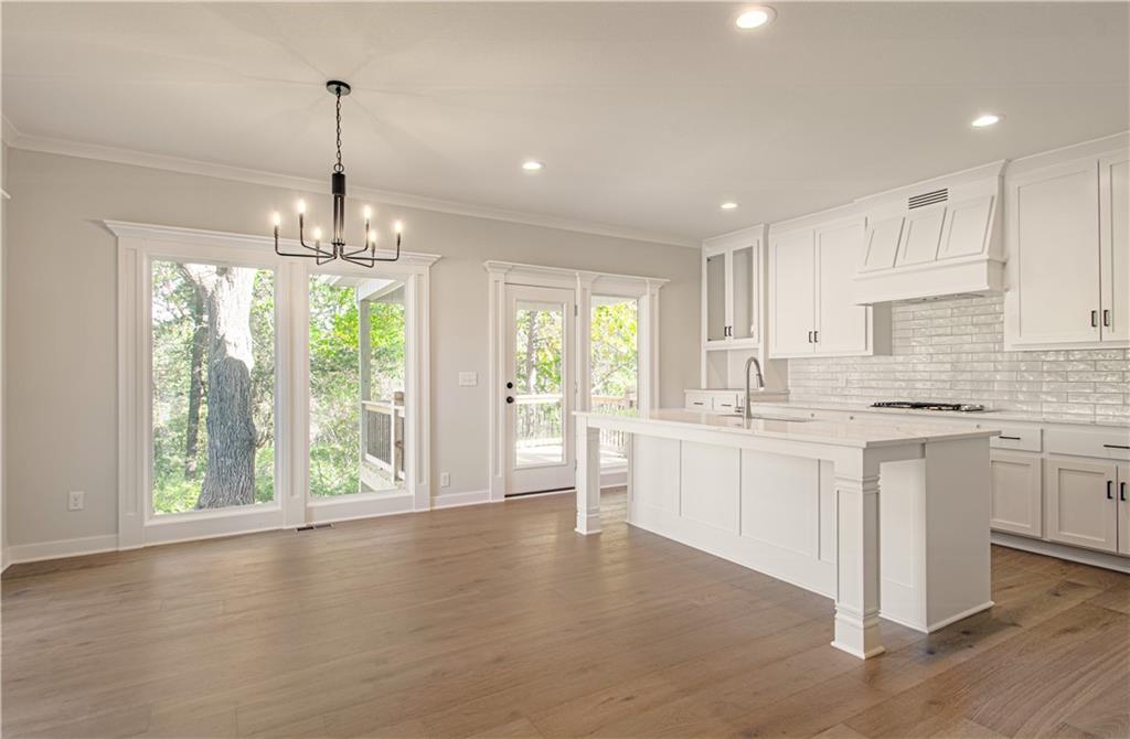 The move-in ready "DAISY" is a Gorgeous 2-Story home with 2900 square feet backing to woods. Offering 5 Bedrooms, with the 5th Bedroom on the Main Level, and 4 Full Baths. Upgraded finishes and attention to detail this lovely home offers Rounded Arches, Custom Built Cabinets, HUGE Kitchen Island, Bonus Bar with beverage fridge, Floor to Ceiling Windows, Gourmet Kitchen, Gas Cooktop, Mudroom at Garage Entry and an Open Layout which makes it great for entertaining. The Second Level is just as impressive and features a Private and Expansive Primary Suite and Walk-in Closet that has access to the Laundry Room. The Primary Bath is luxurious with an oversized Tub and Walk-in Shower with tile walls. There are 3 more bedrooms and 2 more baths on this level. Beautiful Staircase overlooks the Front Entry. Huge walk-out basement that could be finished to fit the buyers needs.
