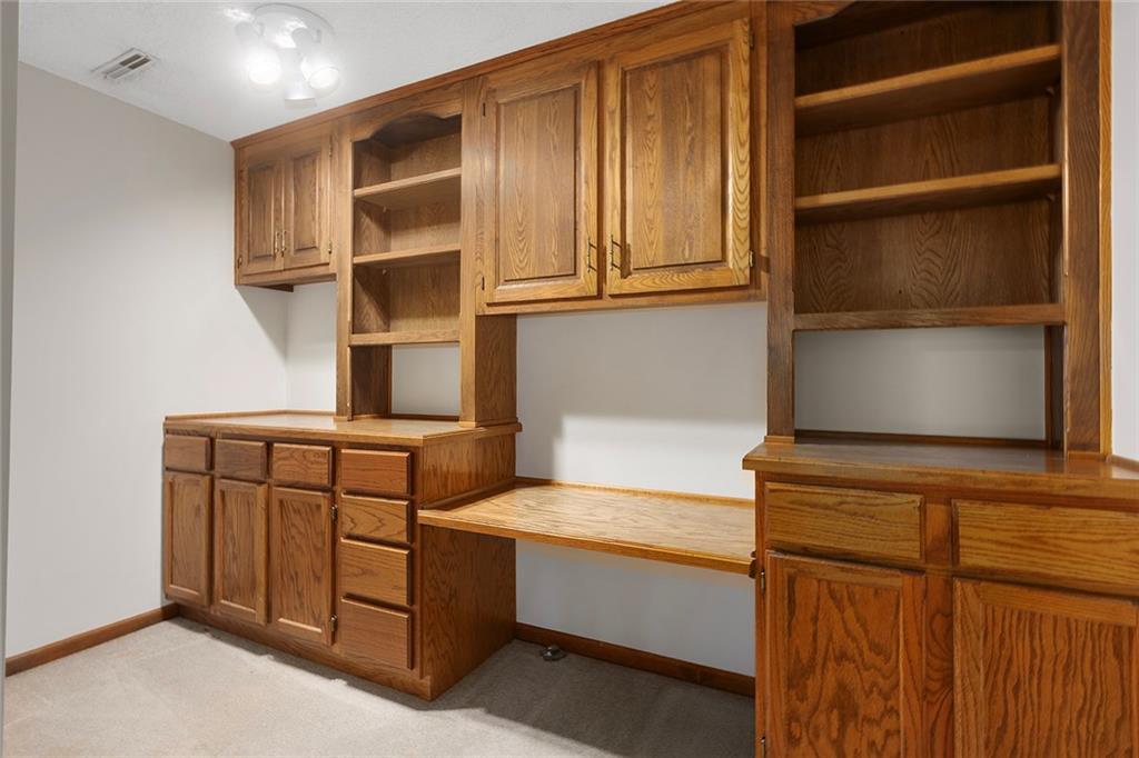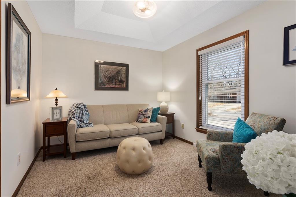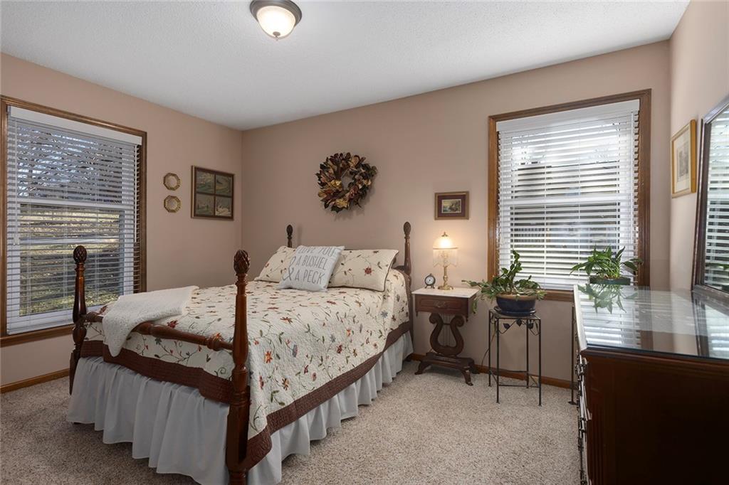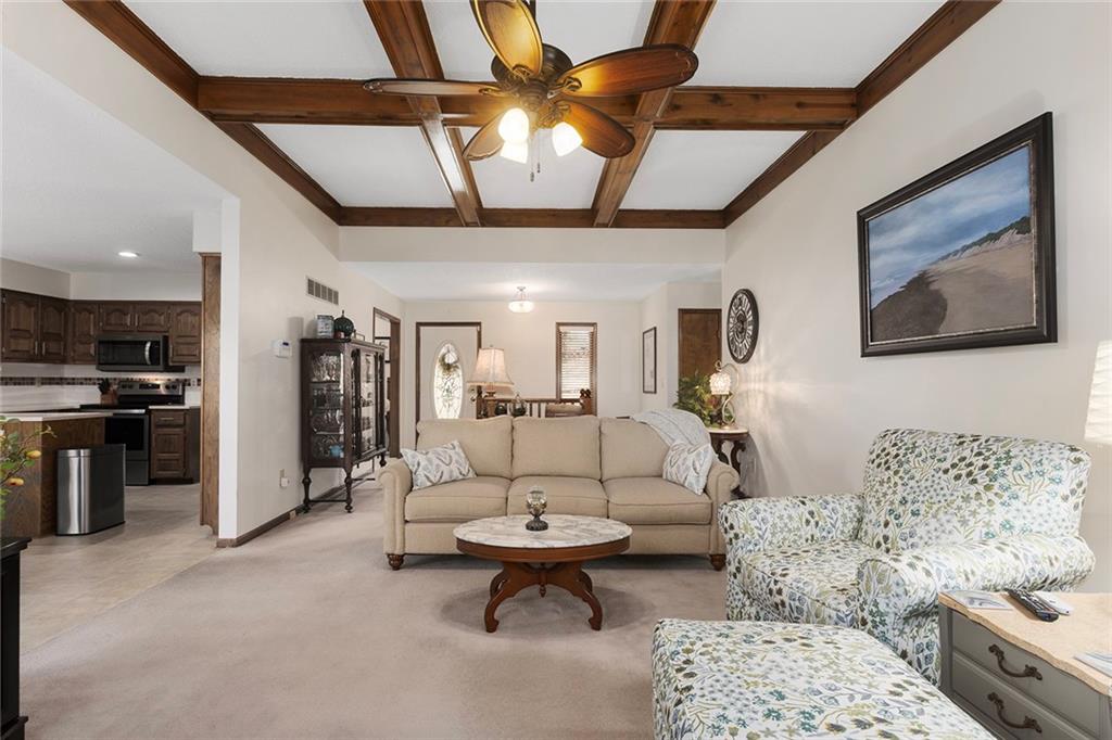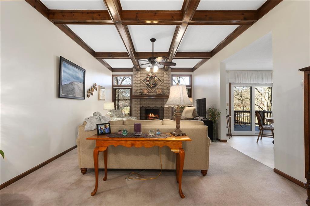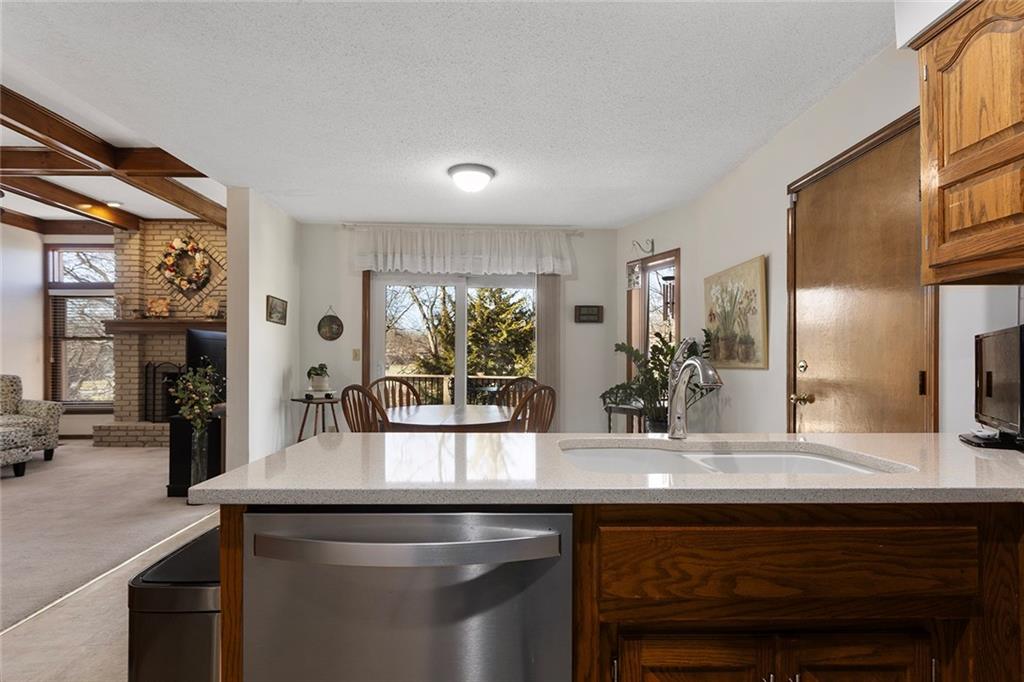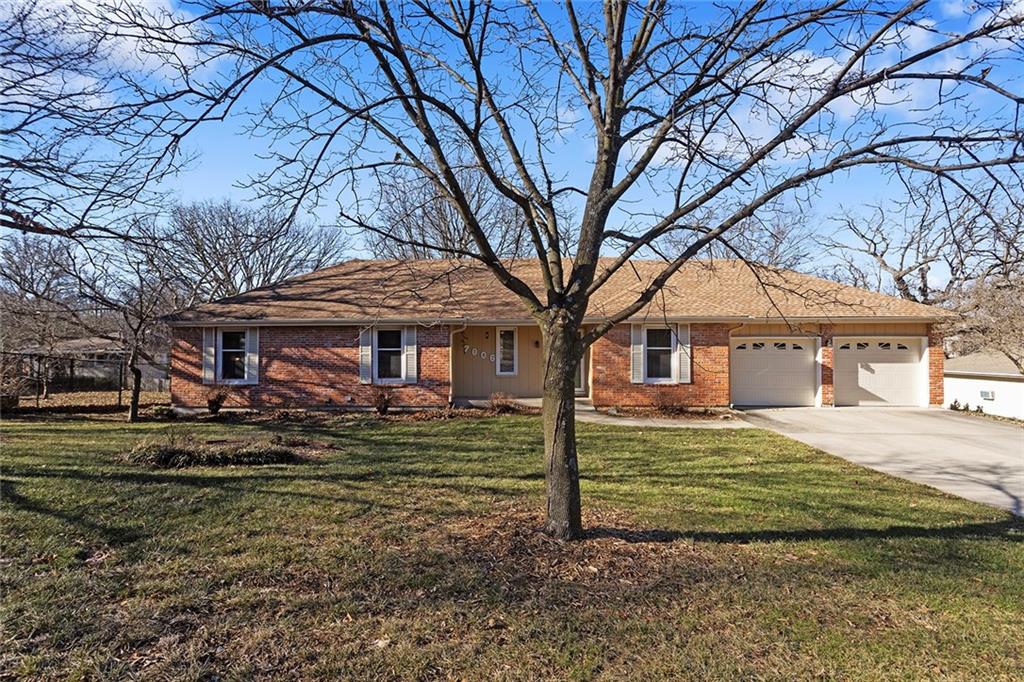 Well-cared-for ranch located on a quiet dead-end street backing to peaceful green space with beautiful tree views. This three-bedroom home offers true main-level living with a two-car garage and backyard shed for added storage. Recent updates include a new deck, new furnace, new A/C, and newer garage doors! The main level showcases a spacious living room with box-beam ceilings and a fireplace, a formal dining room currently used as a sitting room, and a bright kitchen with solid-surface countertops. The primary suite features a full bath with jacuzzi tub, separate shower, and walk-in closet. Bedrooms two and three, a second full bath, and the laundry room are also conveniently located on the main level, enhancing everyday functionality. The finished walk-out lower level provides excellent additional living space with a recreation room featuring a second fireplace, an office area with built-in desk and cabinetry, and a full second kitchen—ideal for entertaining, guests, or multi-generational living. The lower level also includes a storage room with built-in shelving and an additional nearly finished room with a closet, offering flexibility as extra storage, hobby space, or a potential non-conforming fourth bedroom. The basement is in need of new carpet. The seller is offering the home in its present condition. A serene setting with scenic views makes this home a standout.