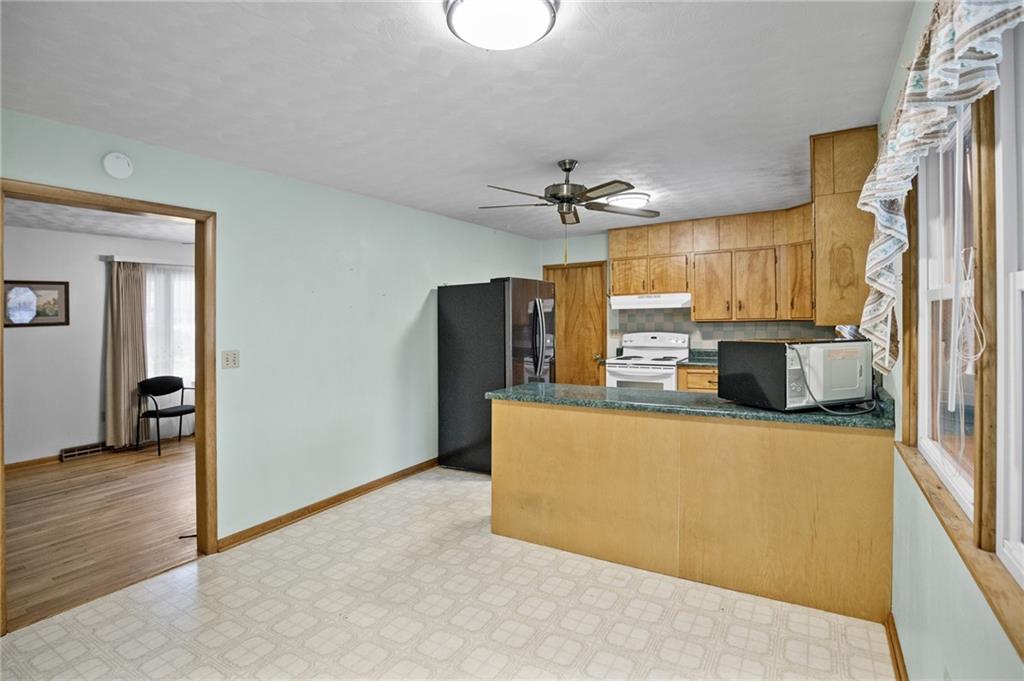 A cozy and well-cared-for home on Kitty Street! Step inside to find charming 1960s-era hardwood floors and a comfortable, well-designed living room, with the kitchen and dining area just around the corner. The kitchen comes fully equipped with appliances and offers ample counter and cabinet space. Off the kitchen is a bright sunroom filled with natural light and views of the beautifully maintained backyard. Outdoors, you’ll enjoy a goldfish pond, partial fencing, a convenient doggie door, and a garden shed. Down the hall are three bedrooms and a full bathroom. One bedroom is currently used as a laundry room but could easily be converted back, with laundry moved to the basement if desired. The basement provides excellent additional storage. Major upgrades include a newer gas furnace, water heater, 220-amp electrical panel, generator system, and a newer roof. This home has been lovingly maintained—schedule your showing today!