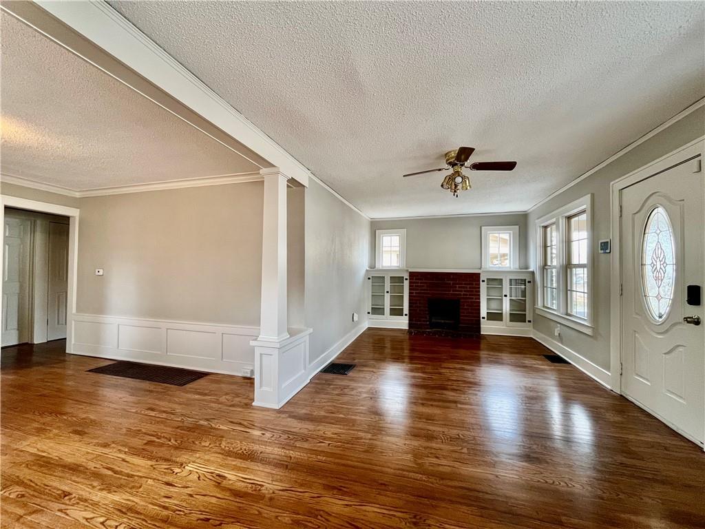 Spacious and inviting 5-bedroom,3-bathroom home. Master bedroom with carpet, walk in closet with on suite bathroom. Hardwood floors in the living room, dining room, 2 first floor bedrooms and 2 second floor bedrooms. The living room offers custom built-ins and flows seamlessly into the formal dining room, perfect for gatherings and entertaining. Kitchen with newer cabinets and countertop. Fresh paint throughout. Enjoy outdoor living from the spacious front porch or the covered deck overlooking the fenced backyard. The walkup basement adds versatility and additional living or storage space. This well-maintained home offers classic charm and exceptional living space. The home is in tax abatement half of the taxes for 2026 through 2029. SELLERS TO REVIEW ALL OFFERS MONDAY 1/19/2026