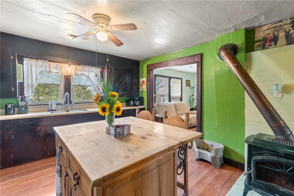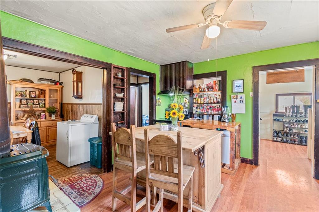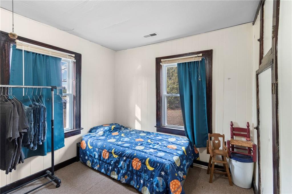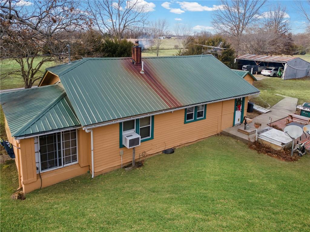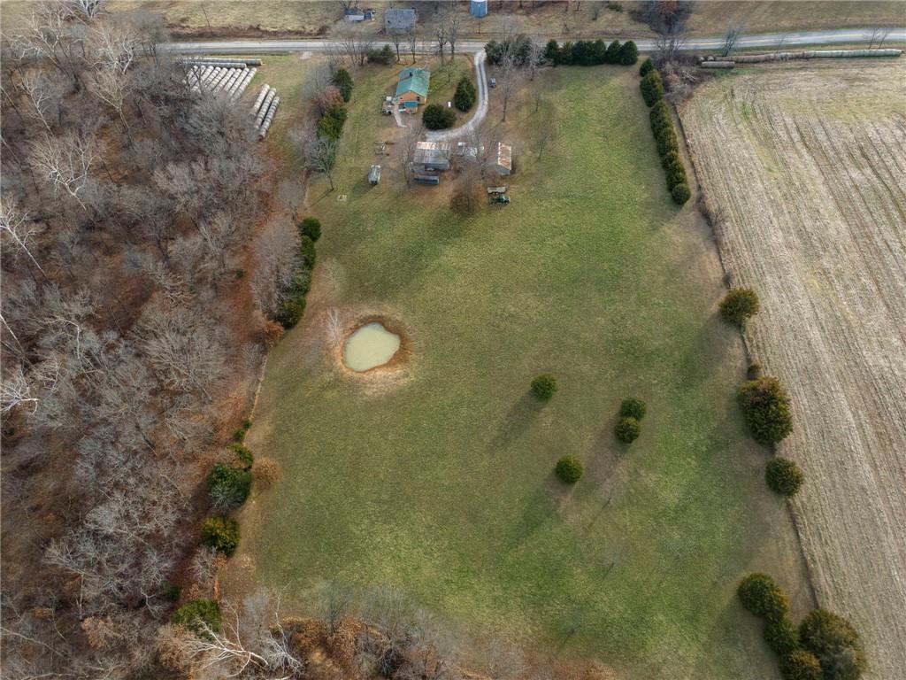 Welcome home to this charming 1900 farmhouse set on 10 scenic acres of half timber, offering peaceful country living with convenient blacktop access. The property features 3 bedrooms and 1 fully renovated bathroom that has been completely gutted and updated with all new fixtures, including a tub/shower combination. The enclosed front porch has been thoughtfully converted into a primary bedroom with a sliding glass door leading directly outdoors. Heating options include a porcelain wood stove and propane gas. Updates include new windows installed in 2012, a new metal roof, updated exterior siding, and fresh paint throughout. The land offers three established garden areas supported by a working well for garden watering, one apple tree, and fencing on three sides. The property also includes a 20x30 detached garage, a small shop, and two bay sheds—providing excellent space for storage, hobbies, or equipment. A rare opportunity to enjoy privacy, acreage, and timeless farmhouse character—welcome home to country living at its best.