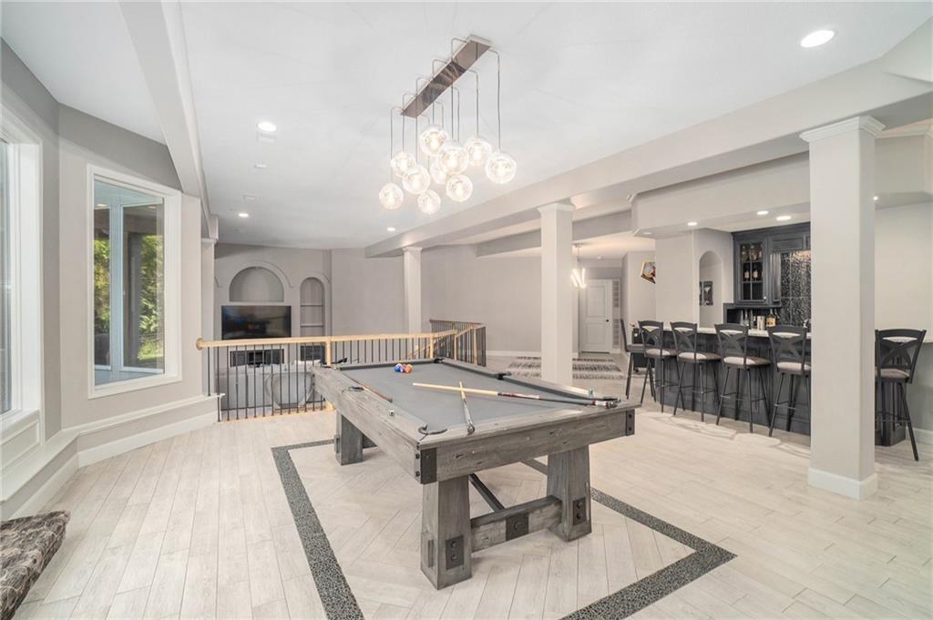 This magnificent Reverse 1.5 Story in Tremont Manor sits on a desirable corner lot backing to lush, mature trees, offering both privacy and curb appeal. Thoughtfully updated throughout, the home features soaring ceilings, beautiful built-ins, and an open, airy floor plan designed for comfortable living and effortless entertaining. The kitchen showcases hardwood floors, a generous island, and abundant cabinetry, flowing seamlessly into the main living spaces. The spacious primary suite is a true retreat with dual vanities, custom built-ins, a walk-in shower, and a separate whirlpool tub. A well-appointed main-level office is filled with natural light, making it ideal for working from home. The finished lower level is perfect for entertaining, complete with a full bar, game area, and expansive family room. The impressive 19x22 suspended garage provides exceptional storage and features a convenient double-door exterior entrance. Step outside to enjoy the peaceful backyard from the covered deck or patio. Recent updates include a newer roof, updated interior and exterior paint, refreshed landscaping, updated light fixtures, flooring, and more. A truly exceptional home—this one is a must-see!