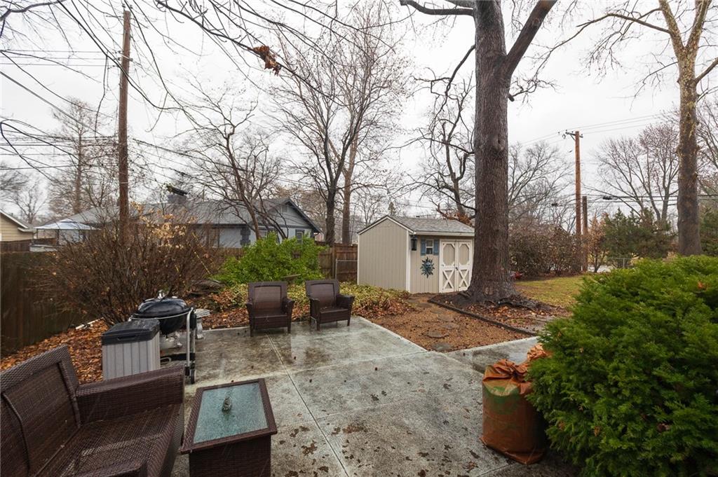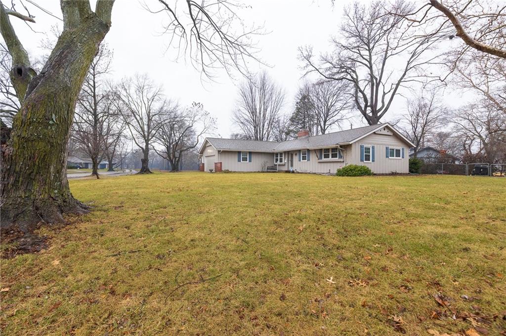 Ideally located, this charming ranch offers convenient one-level living just minutes from Avila College, highways, shopping, and the highly sought-after Country Lane Estates. The updated kitchen features white cabinetry, a built-in oven, drop-in range, granite countertops, and beautiful wood flooring that flows seamlessly throughout the home. Two spacious living rooms- each highlighted by a classic brick fireplace- create warm and inviting gathering spaces. The home also offers a formal dining room plus a cozy breakfast room off the kitchen. Three spacious bedrooms feature wood flooring, ceiling fans and two-inch blinds that allow abundant natural light. Two tiled bathrooms with built-ins- one with a shower/tub combination and a private primary bath with a walk-in shower. Situated on a large corner lot, the outdoor space boasts a generous patio, a quaint storage shed, and mature trees providing privacy. The full basement offers a blank slate, ready to be finished to suit your needs. This one won't last long!