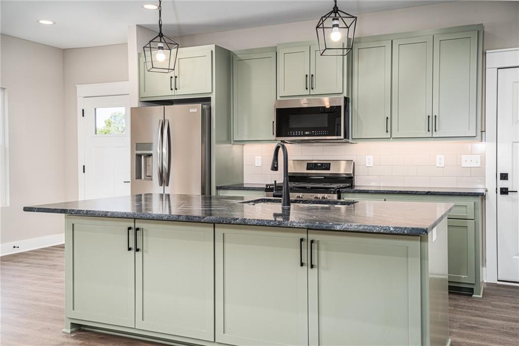 Price Reduction and 5 Year Tax Rebate!! New construction townhome with main-level primary bedroom including double closets. The stylish kitchen is designed to be highly functional, with quartz countertops, a gas range, soft-close cabinets and drawers, and a large pantry. Storage is plentiful throughout this home. The main level bath offers a spacious, beautiful onyx shower. Downstairs, three additional bedrooms share a full bath. There's also extra living space and a spacious laundry room in the walkout basement. One of the downstairs bedrooms opens directly to a patio, providing a private spot to relax or enjoy the outdoors. LVP flooring runs through the main living areas, giving the home a modern look and durability. The neighborhood is just north of town, offering a quieter setting while keeping Highway 56, Gardner, and Lawrence within easy reach. Homeowners can also take advantage of a 5-year tax rebate by submitting proof of tax payment with the city each year to qualify for the rebate.