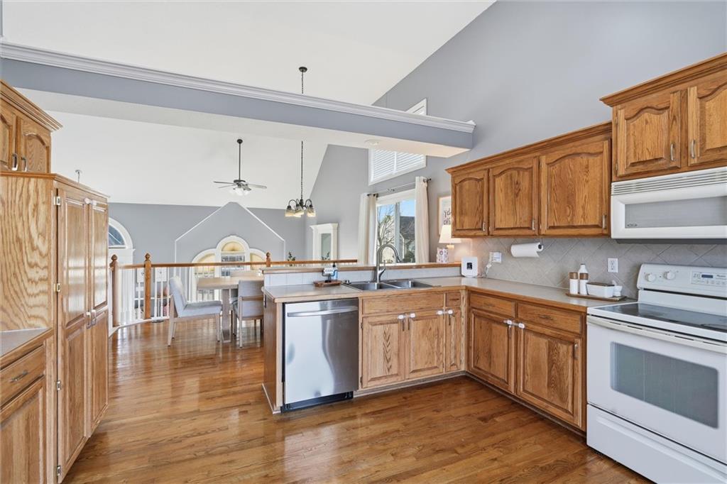Welcome Home! This beautifully maintained home is tucked into the desirable Rock Hill neighborhood with inviting curb appeal and the perfect balance of comfort and functionality. Inside you'll find tasteful paint colors and a welcoming atmosphere, perfect for both daily living and entertaining. The vaulted ceilings in the family room and kitchen help showcase all of the natural light the the home offers. Enjoy the kitchen and dining area's hardwood floors and get cozy around the family room's gas fireplace. The master bedroom features a spacious ensuite bathroom and large walk-in closet. The finished walkout basement provides plenty of extra living space with another large family room, full bathroom, and 4th bedroom. Need even more space? Check out the finished sub-basement! Enjoy the outdoors from the deck off the kitchen or covered patio. The fenced backyard is large and flat, perfect for pets and kids to play! Don't miss the new HVAC (2024), new roof (2023), new kitchen sink and dishwasher, and new wifi garage door opener! You'll love having access to the neighborhood pool and community events! Located close to shops, dining and highway access. Don't miss out—this one's ready for you to move right in!