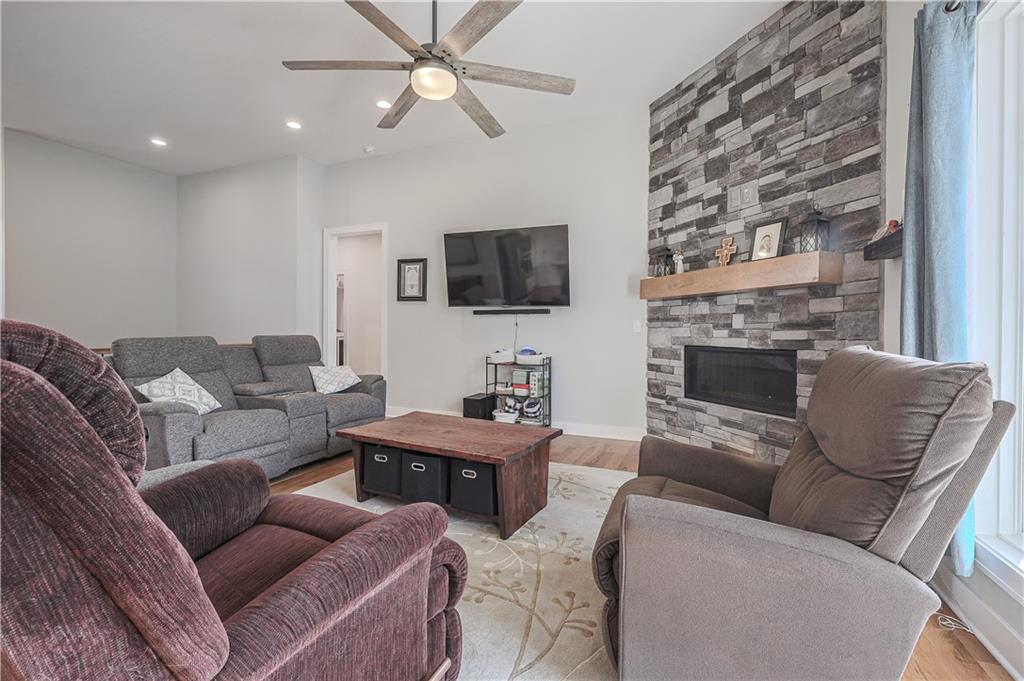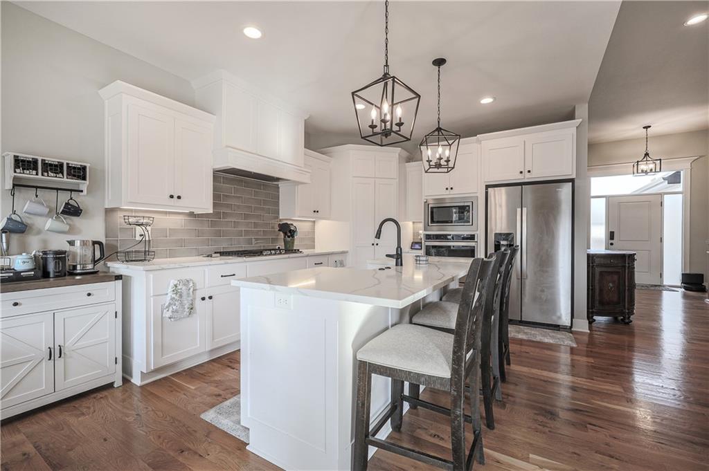 Imagine this: your mornings begin w/a quiet walk along the neighborhood trails, your afternoons are spent enjoying the community pool & splash pad, & your evenings end gathered around the glow of your own stone fireplace. This is more than just a house; it’s a lifestyle. Step into a home that effortlessly blends modern luxury w/everyday comfort in one of the area’s most hidden communities. Perfectly located just minutes from premier shopping, dining, & major highways & w/in the top-rated Spring Hill School District—this ranch-style home w/a finished lower level offers everything today’s buyers are searching for. The main level is open & inviting, thoughtfully designed for effortless conversation & entertaining. A floor-to-ceiling stone fireplace creates a stunning focal point in the living room, bringing warmth & character to the heart of the home. The chef’s kitchen features stainless steel appliances, a spacious layout, & an oversized pantry, perfect for gathering w/friends & family. Enjoy the ease of true main-level living w/the primary suite tucked away for privacy, complete w/a spa-inspired bath, double sinks, & a massive walk-in closet. The laundry room is conveniently connected to the primary suite, & a mudroom area adds extra functionality, keeping the home neat & organized. A second main-floor bedroom offers flexibility for guests, a home office, or additional living space. The finished lower level expands your living area with two additional bedrooms, a third full bath, a large living room, & a versatile bonus room; perfect for a gym, playroom, or media area. Additional highlights include a storm shelter, 80-gallon water heater, blinds throughout, & smart home features. Step outside to your covered patio & fully fenced backyard, ideal for morning coffee, summer BBQs, or relaxing evenings. Beautifully designed, thoughtfully upgraded, & perfectly located, this home combines elegance, comfort, & convenience in a setting that truly stands out.
