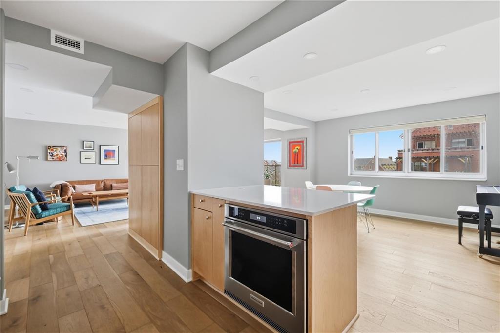 Step into this stunningly reimagined south-facing residence on an upper floor, drenched in natural sunlight. Every inch of this home has been thoughtfully renovated with luxurious upgrades, including a sleek, high-end kitchen, impeccably designed brand-new bathrooms, elegant flooring, and new sliders and windows that frame the beautiful views. Originally a two-bedroom layout, the space has been smartly reconfigured to create an expansive kitchen and dining area, perfect for entertaining or simply enjoying the elevated lifestyle this home offers. Step out onto the private balcony, your own serene retreat, where you can soak in sweeping views of lush green space to the south. This is more than a home—it's a statement of sophisticated living.
