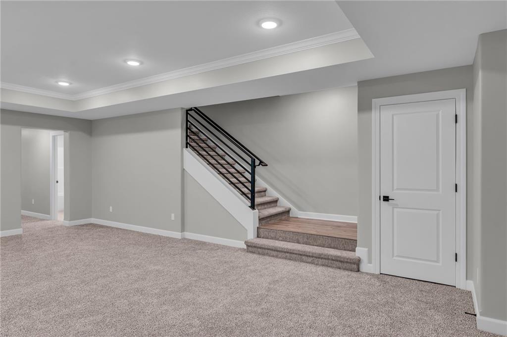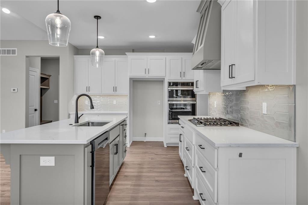 The Bridgeport II Estate floorplan built by Drippé Homes. Open concept daylight basement with tons of natural light! Kitchen furnished with stainless appliances, gas cooktop, hood vent, microwave, wall oven, quartz countertops, large island with oversized sink and spacious walk in pantry. Two bedrooms on main with primary opposite other bedroom. Ensuite features double vanity, tiled walk-in shower, private water closet and gigantic closet with pass through to laundry. Mudroom off garage with boot bench. Finished basement with two additional bedrooms and rec room complete with wet bar, ready for hosting the next big game. Cozy up to the fireplace in the living room or enjoy the sunrise from the covered composite deck. Home backs to tree-line providing ultimate privacy with sod and sprinkler system included. Unfinished basement storage, built-ins and three car garage provide plenty of storage. Almost ready for your personal touch - schedule a showing today!