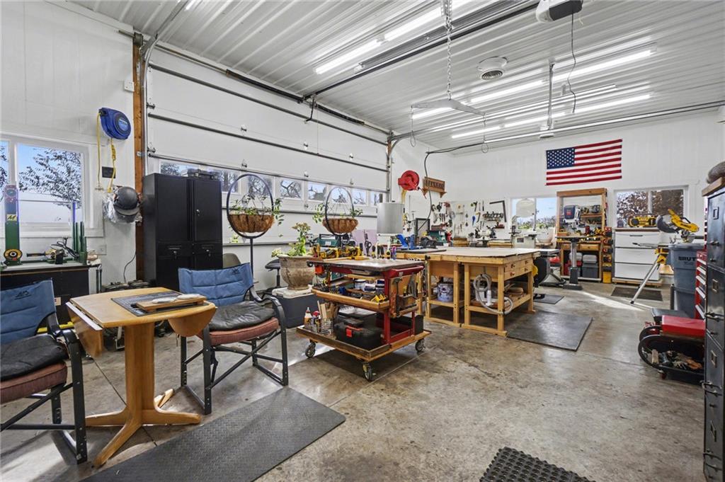 This breath-taking, custom-built brick estate is set on 3.94+/- Acres. Carefully maintained, this impressive property offers over 4,500 sqft of finished living space and boasting multiple well-equipped outbuildings that seamlessly blend convenience w/functionality. The main level offers a front formal dining room & a sun-filled family room overlooking the serene backyard. The exceptional kitchen includes stone counters, a large island, built-in appliances, a gas cooktop & opens seamlessly to the living room. A breakfast nook provides casual dining, while the oversized laundry room includes pantry & storage closets plus a convenient full bath. The primary suite is a true retreat w/vaulted ceilings, separate his-and-hers walk-in closets, & a spa-like ensuite showcasing a dual-sink vanity & center whirlpool tub. Vaulted ceilings, solid hickory cabinetry, trim & interior doors are found throughout, highlighting the quality craftsmanship. Secondary bedrooms are generously sized w/excellent closet space & nearby bath access. The walkout lower level expands the living space w/a large family/rec room, a den that could serve as a non-conforming 5th bed, a full bath & a wetbar ideal for entertaining. Efficiency upgrades include radiant in-floor heat, LP gas furnace, multiple A/C systems, a Bosch electric boiler, high-efficiency water softener & 13 solar tubes for abundant natural light. More features include Andersen casement windows, a newer composition roof, five solar roof fans & R49 attic insulation. Outdoor living shines w/open & covered patio areas, a custom firepit & concrete walkways. The beautifully landscaped grounds feature mature oak, white pine trees, fruit trees, a working windmill, gazebo & storm cellar. Outbuildings include a 40’x60’ insulated shop w/heat, A/C, water, sink & urinal; a 27’x84’ Cleary building w/(4) 16’ automatic overhead doors & electric; an insulated chicken coop, livestock building & fenced dog kennel w/water access.