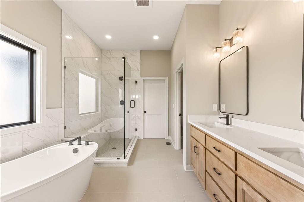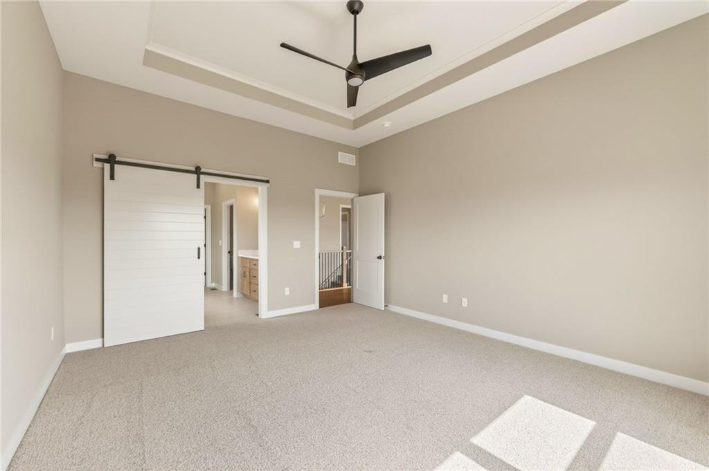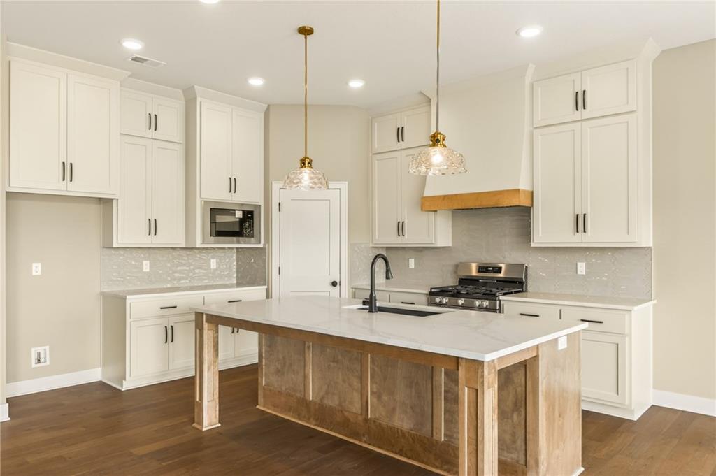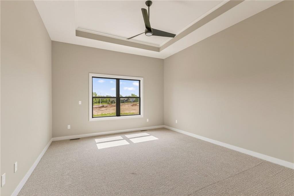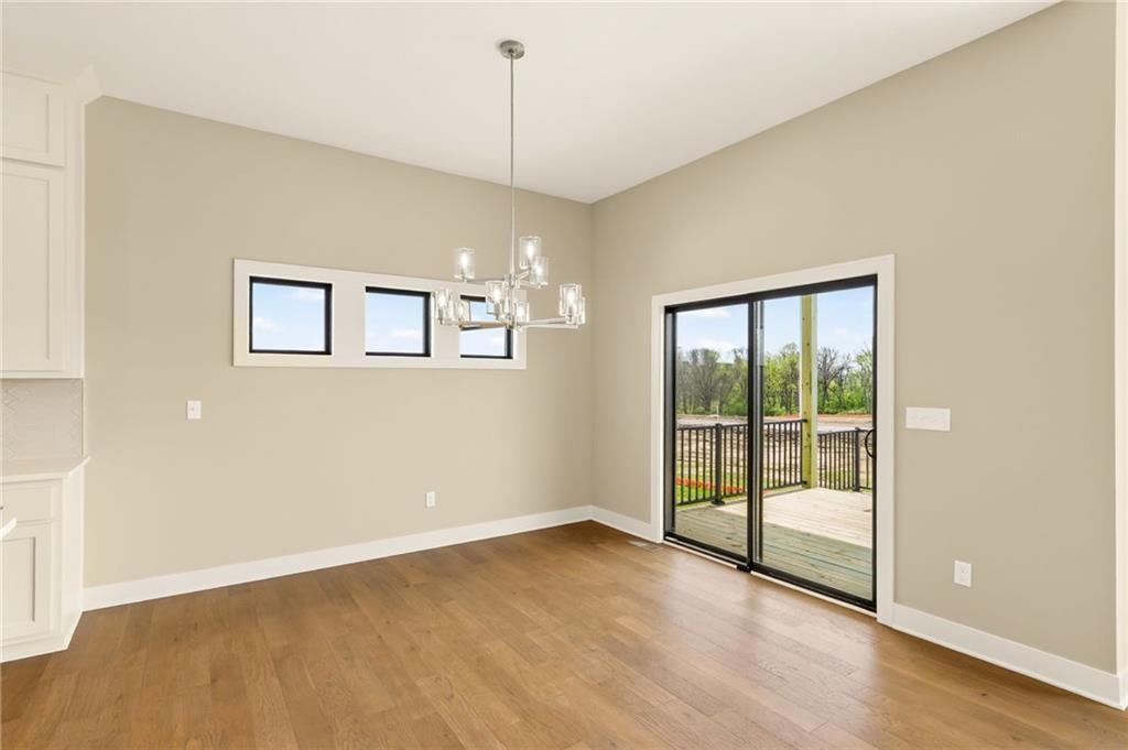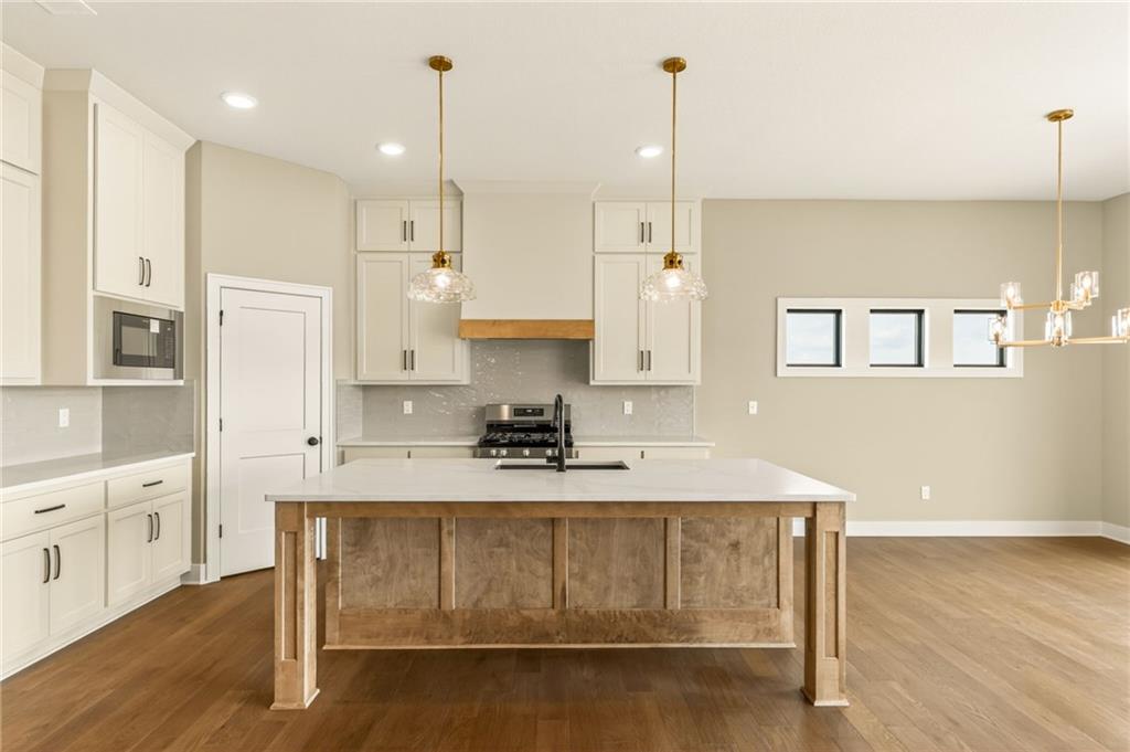 The McKinley by Hearthside Homes is a stunning Reverse 1.5 Story offering 4 bedrooms, 3 baths, and over 2,800 sq ft of well-appointed living space that blends comfort, craftsmanship, and modern style. The open-concept main level features hardwood floors, abundant natural light, and a great room anchored by sleek linear fireplace. The kitchen impresses with quartz countertops, a contrasting island and hood, and a black Silgranit sink—balancing beauty and function. Dining area opens to covered deck overlooking the backyard. Home ready-MID-APRIL. The primary suite delivers a true retreat with a freestanding tub, tiled shower, dual vanities, and a spacious walk-in closet that connects directly to the laundry room. A secondary bedroom, full bath, and laundry complete the main level. The finished walkout lower level adds a large rec room with wet bar, two bedrooms with walk-in closets, a full bath, and generous storage space. An oversized patio enhances outdoor living and is perfect for entertaining or quiet relaxation. Mid April completion date. This home is built with double-wall construction, I-joist floor systems, and engineered roof trusses for strength and durability. Every Hearthside home also includes a video-recorded sewer scope, third-party duct cleaning, and a third-party inspection process to help ensure quality and peace of mind. Hearthside Homes has been building in the Kansas City area since 1987 and is known for quality construction and a streamlined building experience. ***Hearthside includes an exceptional warranty package: 1 year of whole-house coverage, 2 years of mechanical systems protection, and a 10-year major structural warranty. Plus, a third-party inspection with sewer line review and HVAC duct cleaning.*** Outstanding community amenities include; swimming pool, pickle ball court, 3 acre fishable pond, outdoor pavilion area w/2 fireplaces, rentable clubhouse with kitchen & party space & internet!