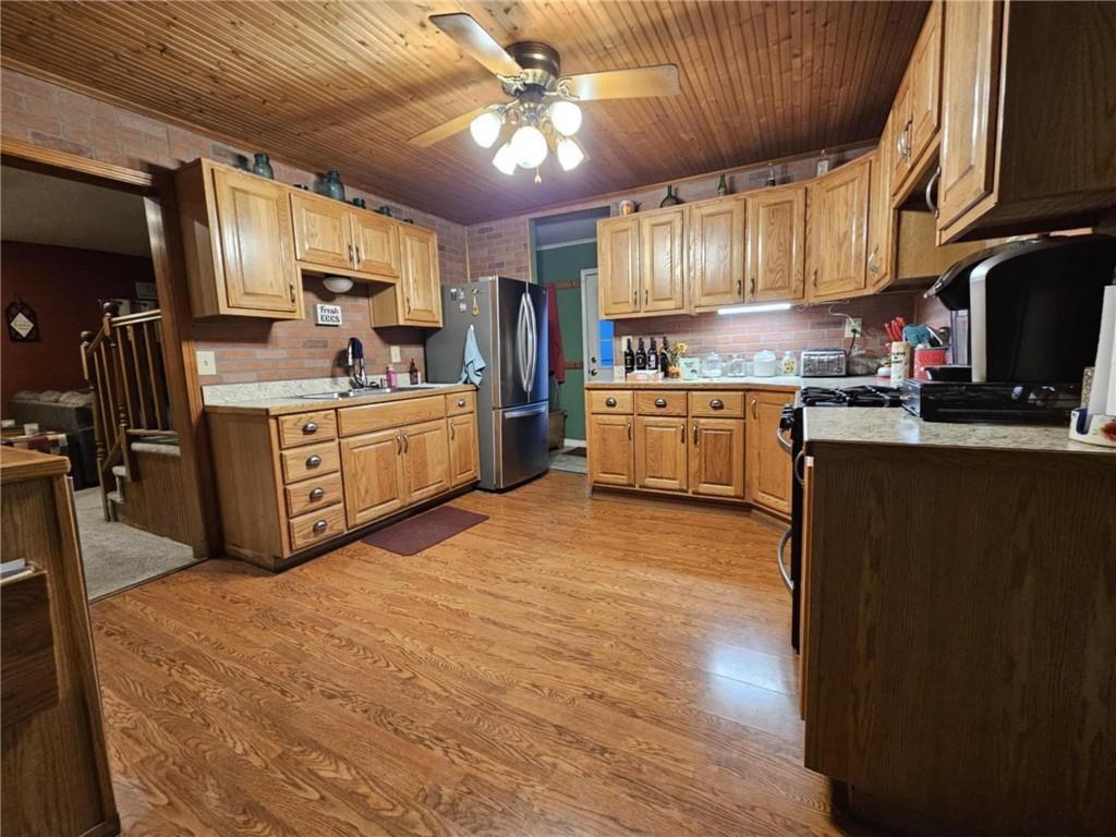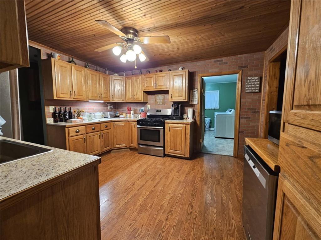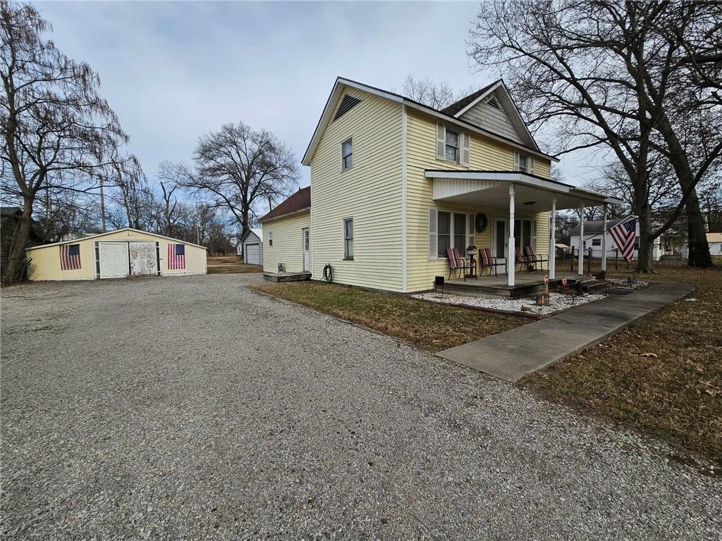 Welcome to 112 W Alberty Rd, a home that blends comfort, space, and everyday convenience in a great location convenient to the country club and Pittsburg. Whether you’re looking for your first home, your next move, or a smart investment, this property offers plenty of potential to make it your own. This home boasts a covered porch that spans the front of the home, providing cover from the elements. The large living room welcomes you home; stairs lead from the living room to two bedrooms, the smaller one is presently being used as an office. The larger bedroom has plenty of natural light, storage and access to the half-bathroom. From the living room, you access a large kitchen features solid wood cabinetry, stainless steel appliances and a tasteful wood ceiling. The kitchen is attached to the dining area, which offers a sliding glass door, providing the warmth of morning sunshine and access to the covered back porch and adjacent patio. The laundry room off the kitchen boasts storage and access to the main floor bathroom. The bathroom features a large, walk-in shower and storage space. An ample mudroom is off the bathroom and kitchen, near the back door a perfect landing place for your bags and shoes. Upstairs, you'll find two bedrooms; the smaller one is presently being used as an office. The larger bedroom has plenty of natural light, storage, and access to the half-bathroom. The large, shaded yard, 2-car garage, and additional outbuilding offer plenty of storage. New Roof added 2025 Call today to make this home yours!