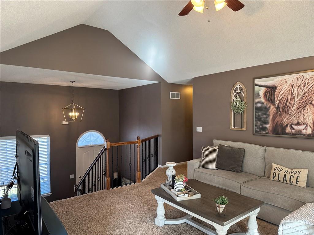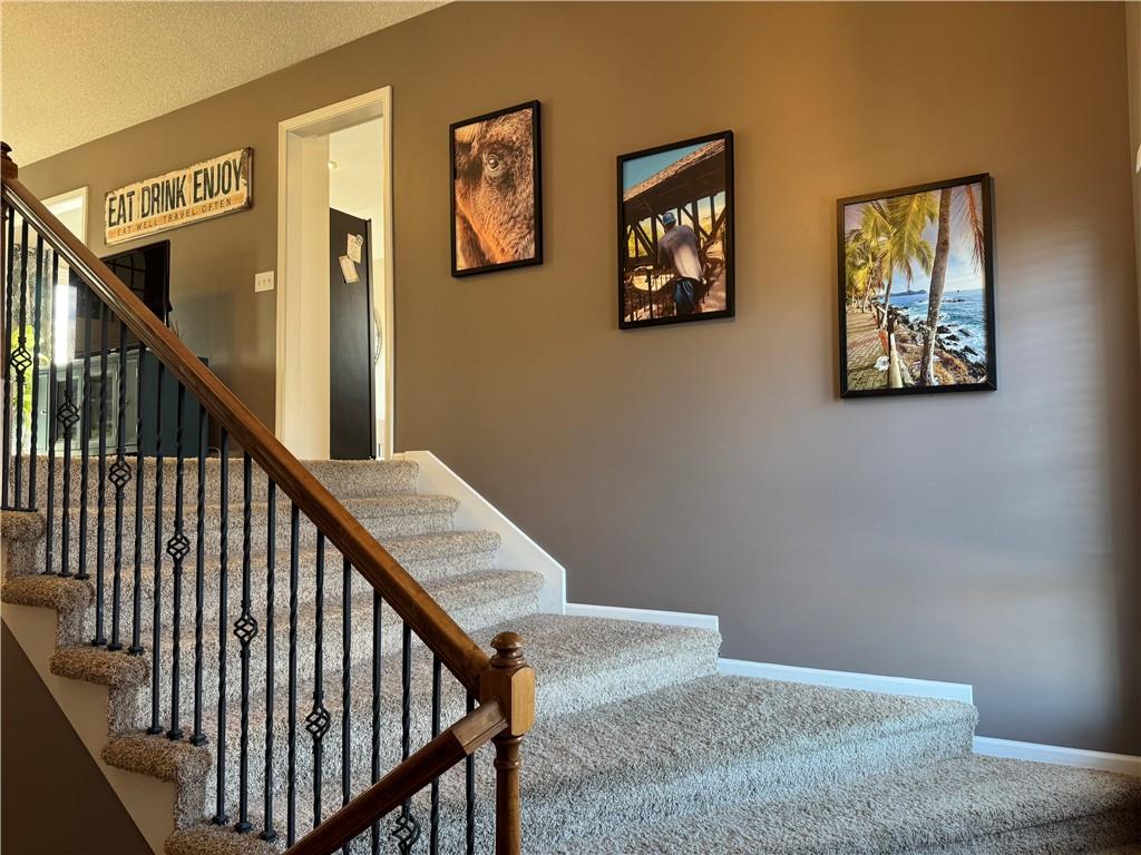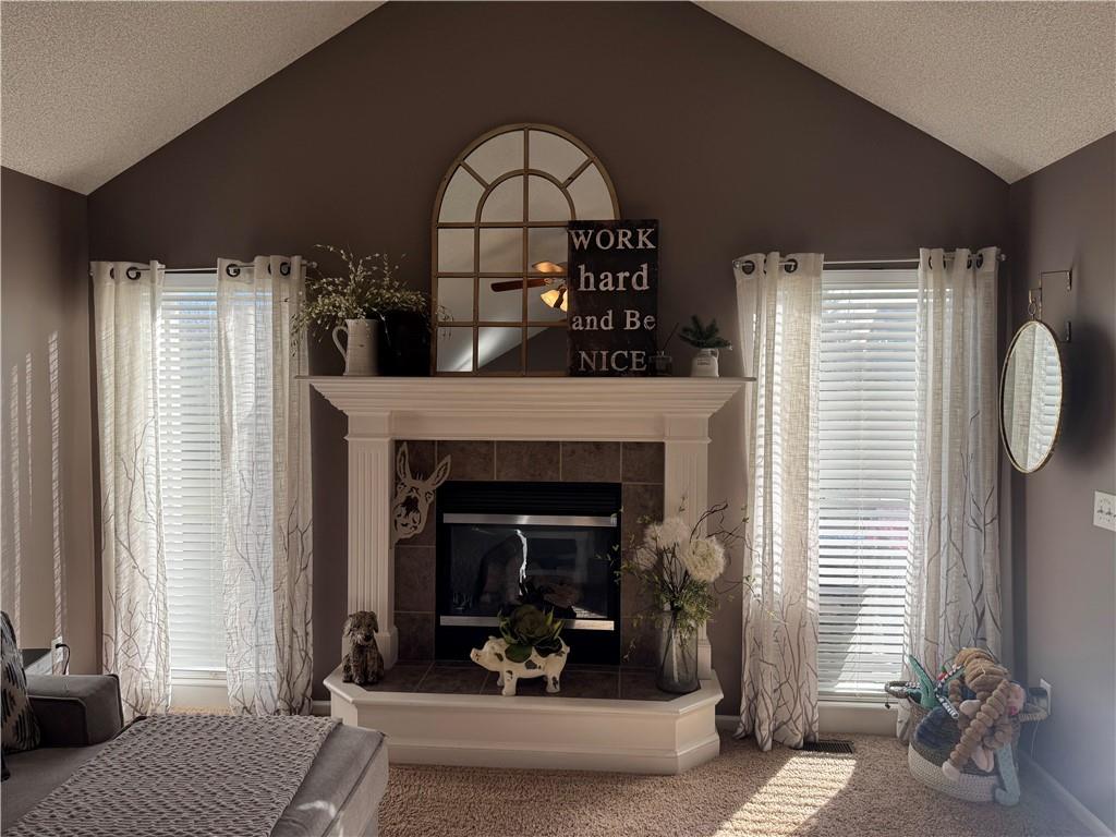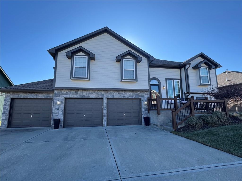 Welcome home to this beautifully maintained 3 bedroom, 2.5-bath residence offering space, style, and functionality throughout. The main level features soaring ceilings, abundant natural light, and a welcoming living room centered around a cozy fireplace- perfect for everyday living or entertaining. The kitchen is both stylish and functional with white cabinetry, granite countertops, stainless steel appliances, tile backsplash, and plenty of counter and storage space. The adjacent dining area opens to the deck, creating an easy flow for indoor-outdoor living. The spacious primary suite offers a peaceful retreat with a tray ceiling, generous closet space, and a private ensuite bath featuring a soaking tub and natural light from the glass block window. Two additional bedrooms and a full bath complete the main level. The finished lower level provides even more living space with a family room, second fireplace, half bath, and charming custom nook - ideal for a play area, or pet retreat. This level is perfect for movie nights, guests, or a home office setup. Enjoy the outdoors from the elevated deck overlooking the backyard, with stairs leading down to the patio- ideal for grilling, relaxing, or entertaining. Addition highlights include a 3-car garage, neutral color palette, and thoughtful finishes throughout. HOA amenities include a neighborhood pool, and a walking trail just steps away! This home is move-in ready with space to live, relax, and entertain- inside and out! Don't miss your chance to see this one in person.