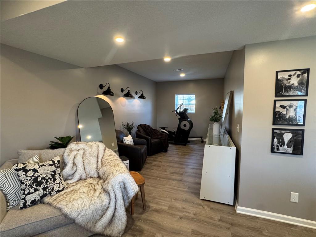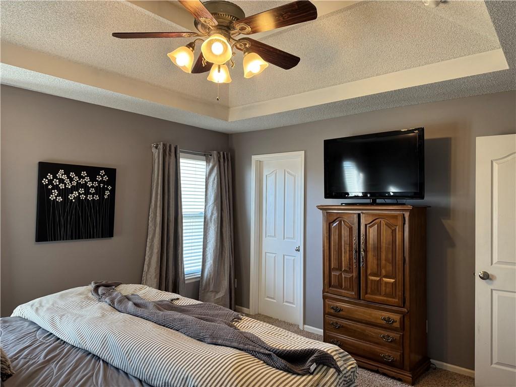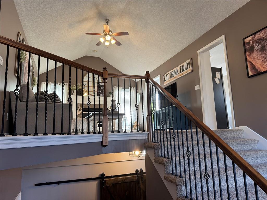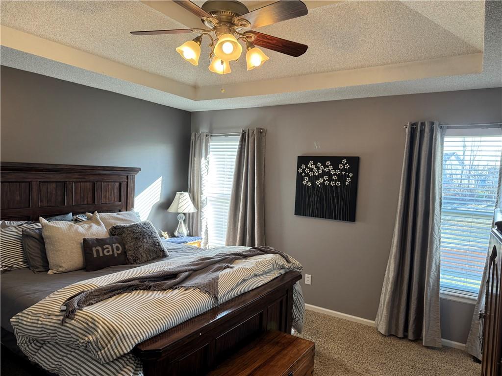 Welcome home to this beautifully maintained 3 bedroom, 2.5-bath residence offering space, style, and functionality throughout. The main level features soaring ceilings, abundant natural light, and a welcoming living room centered around a cozy fireplace- perfect for everyday living or entertaining. The kitchen is both stylish and functional with white cabinetry, granite countertops, stainless steel appliances, tile backsplash, and plenty of counter and storage space. The adjacent dining area opens to the deck, creating an easy flow for indoor-outdoor living. The spacious primary suite offers a peaceful retreat with a tray ceiling, generous closet space, and a private ensuite bath featuring a soaking tub and natural light from the glass block window. Two additional bedrooms and a full bath complete the main level. The finished lower level provides even more living space with a family room, second fireplace, half bath, and charming custom nook - ideal for a play area, or pet retreat. This level is perfect for movie nights, guests, or a home office setup. Enjoy the outdoors from the elevated deck overlooking the backyard, with stairs leading down to the patio- ideal for grilling, relaxing, or entertaining. Addition highlights include a 3-car garage, neutral color palette, and thoughtful finishes throughout. HOA amenities include a neighborhood pool, and a walking trail just steps away! This home is move-in ready with space to live, relax, and entertain- inside and out! Don't miss your chance to see this one in person.