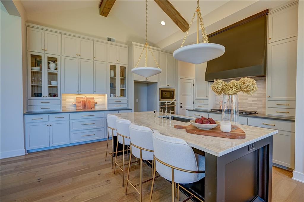 Custom-built by Pfeifer Homes, this stunning second-tier home at Lake Winnebago showcases the sought-after Trinity floor plan in a reverse story and a half design. Situated on a corner lot with a treed backyard, this home offers 3,533 square feet of beautifully finished living space, blending elegant finishes with warm, inviting design. The main level features 2,108 SF with an open concept living area highlighted by cathedral ceilings, beautiful hardwood flooring, striking beams, and light, neutral finishes throughout. The gourmet kitchen offers abundant cabinetry, a prep kitchen with a second oven and microwave, mini fridge, and seamless flow into the living room, perfect for everyday living and entertaining. Step outside to the patio just off the kitchen, complete with a cozy fireplace and built-in storage for cushions or outdoor essentials. The spacious primary suite is a true retreat, featuring a luxurious bathroom and an oversized walk-in closet. A second bedroom and full bath is also located on the main level. A spiral staircase leads to the walkout lower level, offering 1,425 SF of additional living space with a large recreation room, wet bar, game area, two additional bedrooms, two full bathrooms, a half-bath, and generous storage. Additional upgrades include 10-zone irrigation system, landscape upgrades, 2 garage openers, security system with cell dialer, and gorgeous window treatments. As a 2nd tier Lake Winnebago property, this home has ongoing rights to a personal boat slip, just a short walk or golf car ride away. Enjoy all that the Lake Winnebago community has to offer, including a brand-new resort-style pool, horse stables, restaurant, parks, walking trails, tennis and basketball courts, and year-round community events. Come take a look and make this exceptional home your own!