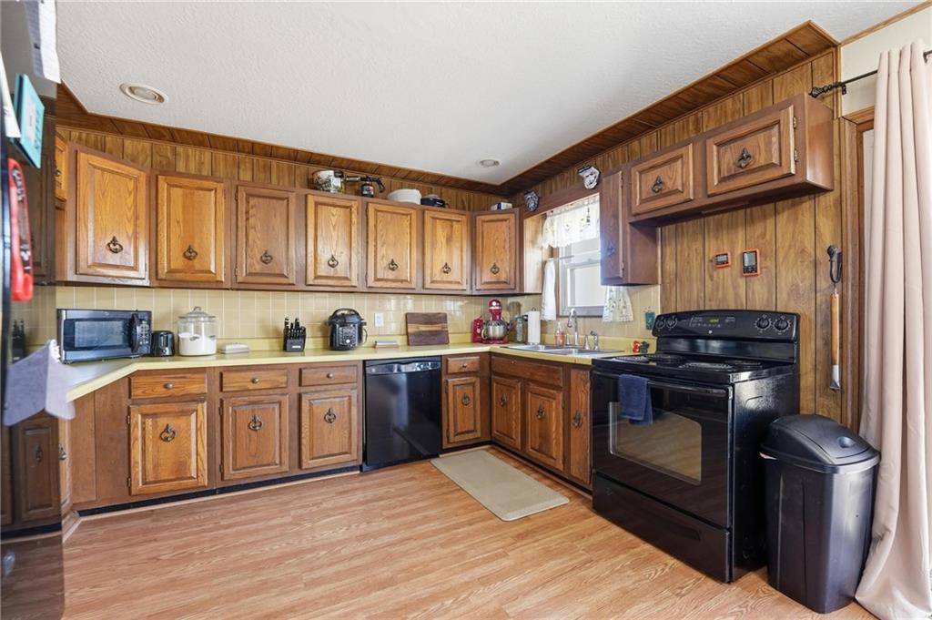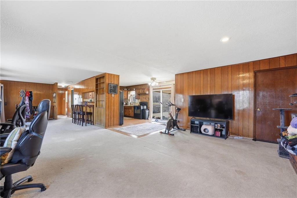 Welcome to this spacious, sprawling ranch nestled within the highly-rated Fort Osage School District! Circle driveway! This wonderfully functional home offers the charm, warmth, and space buyers love — starting with beautiful hardwood floors and a striking wood-burning fireplace that anchors the main living area. The layout flows easily into a large kitchen featuring real wood cabinetry, abundant storage, and generous countertop space — perfect for cooking, entertaining, and everyday living. The primary suite offers the convenience of its own full private bathroom, a feature often hard to find in homes of this era. The finished lower level provides valuable additional square footage, complete with interior access, two non-conforming bonus rooms, and space ideal for home offices, hobby rooms, or guest accommodations. Outside, the home sits on a spacious lot with a large, flat, fully fenced backyard — perfect for pets, play, gardening, or future outdoor upgrades. Enjoy a cup of coffee on the covered back patio. This property combines comfort, functionality, and location in a hard-to-beat package. A must-see for anyone looking for a solid ranch home with room to grow!