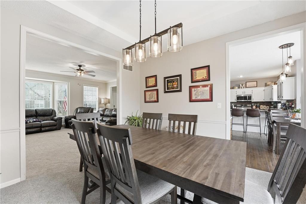 Welcome to this beautiful home, located within walking distance of Riverview Elementary in the highly sought-after De Soto School District. This home is full of thoughtful upgrades you won’t want to miss, including brand-new carpet in the living room, dining room, and staircase, all new light fixtures on the main level and in the upstairs bedrooms, all new Kitchen appliances (Oct 2025) and a newly installed fence valued at $5,100. Step outside to a spacious backyard designed for both fun and relaxation, featuring a composite deck and hot tub—perfect for entertaining or unwinding at the end of the day. As an added bonus, two large TVs will remain with the home, and the existing home warranty can transfer to the buyer, providing added peace of mind through 8/8/26. The main level offers a welcoming living room with a cozy fireplace, a kitchen with granite countertops, and a formal dining room ideal for gatherings. Upstairs, you’ll find a spacious primary bedroom, three additional bedrooms, and the convenience of a laundry room located on the bedroom level. The finished basement expands the living space with a second family room, a bonus room ideal for a home office or non-conforming fifth bedroom, and a full bathroom. Additional updates include fresh exterior paint (July 2025), a roof approximately one year old, four newly replaced front-facing windows, and a brand-new hot water heater. With its extensive updates, incredible features, and prime location near parks and trails, this home offers an exceptional opportunity to buyers!